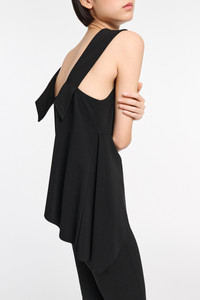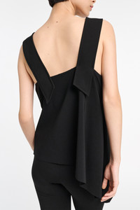 The V-neck tank top has thick straps with decorative overlap and loop detailing. The tank top has a deep V-neckline in the front and the back and an asymmetric draped hemline. Material & Care - 75 % Viscose, 20 % Polyamide, 5 % Elastane - V-neck tank top with wide straps - Straps have decorative loop detailing - Extra wide topstitching - Asymmetrical hem - WE CARE - This item is finished according to STANDARD 100 by OEKO-TEX, 22.0.98928 Hohenstein HTTI Size & Fit - Our model is 179 cm tall and wears a size S - Fitted shoulders - Fitted at the chest - Lightly flared hem