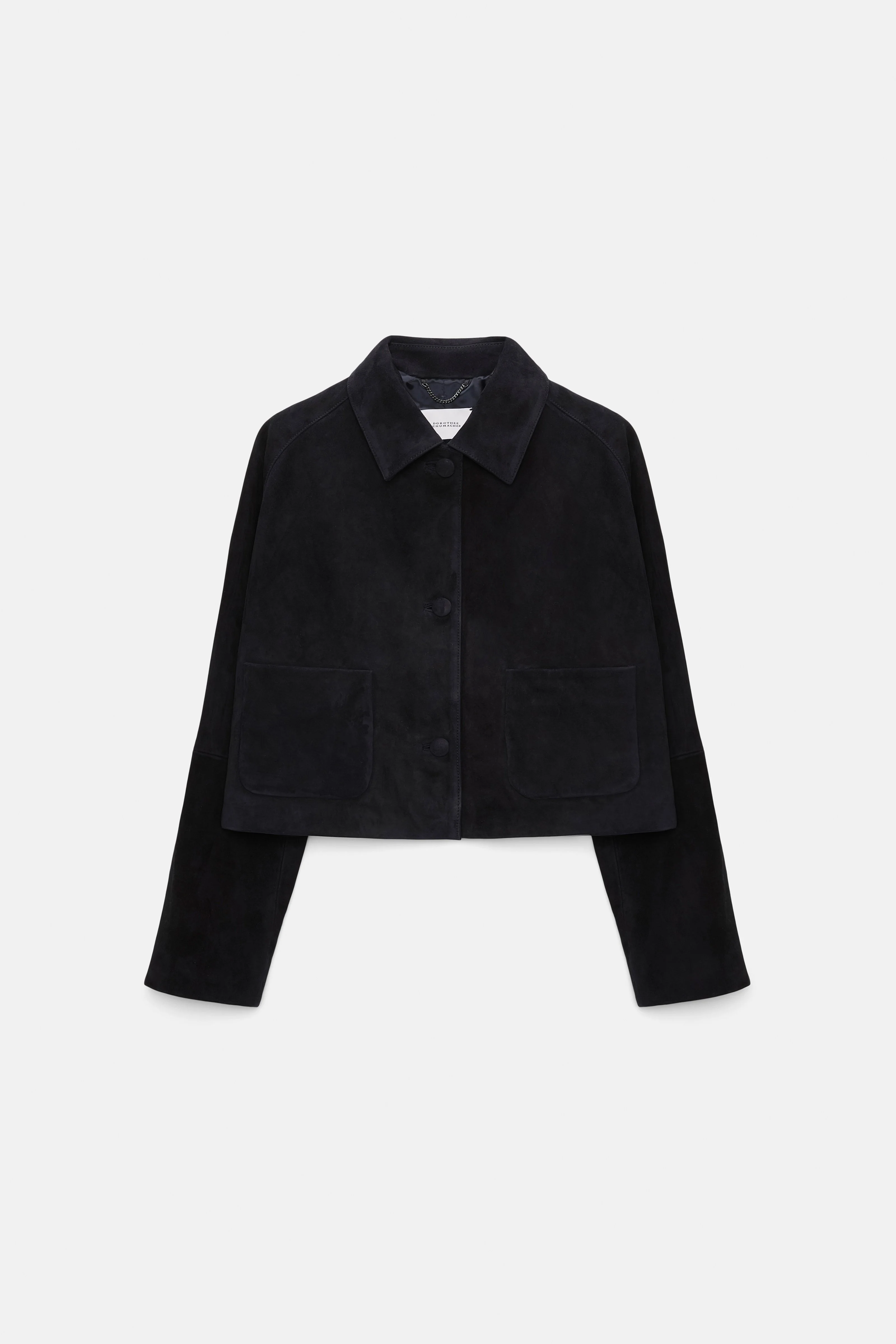The jacket is finished in soft suede and has a slightly oversized silhouette. The jacket has a classic collar, patch pockets and raglan sleeves. Material & Care - 100 % Leather (goat) - Suede jacket - Classic collar - Raglan sleeves - Patch pockets - Lined - Do not wash - Do dry cleaning - Colour changes in product may result from strong light irradiation - This garment may transfer onto dark coloured materials Size & Fit - Our model is 180cm tall and wears a size 2. - Slightly oversized