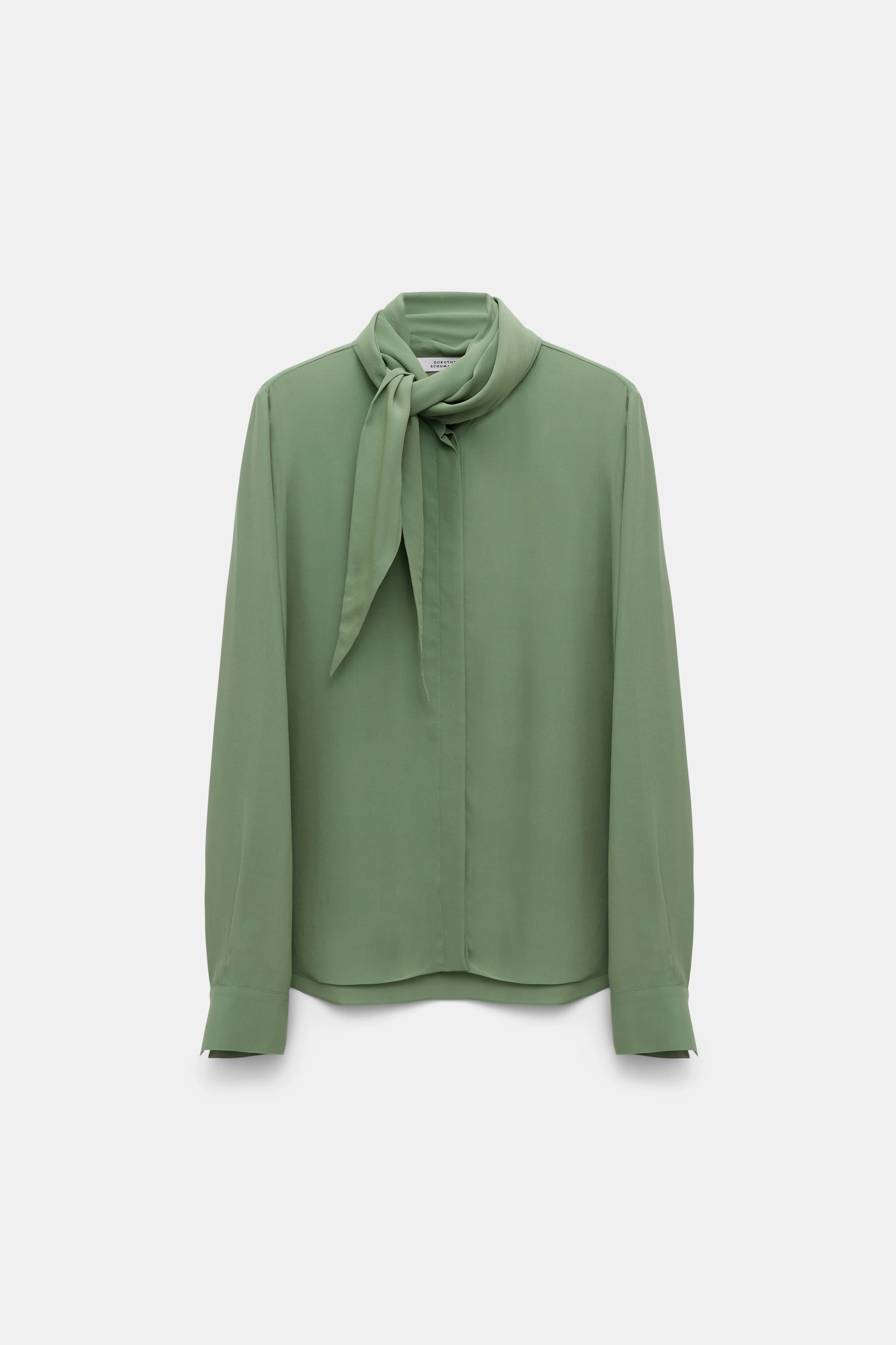 The blouse is styled in flowing silk-viscose crepe de Chine and has a wrap-around tie collar. The blouse has a concealed front placket and button cuffs. Material & Care - 60 % Viscose, 40 % Silk - Flowing silk-viscose crepe de Chine blouse with scarf detail - Concealed placket - Tie collar - Cuffs with covered buttons Size & Fit - Fitted shoulders - Relaxed fit