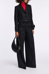 The pants are crafted in floral embroidered Punto Milano and have a wide leg. The pants can be worn as a set with one of our matching jackets. Material & Care - 67 % Viscose, 28 % Polyamide, 5 % Elastane - Embroidered wide leg pants in Punto Milano - Waistband with extended tab closure - Diagonal side pockets - Back welt pockets - Dry clean only - No optical brighteners - Do not expose to extreme light - Shield from sharp items Size & Fit - Our Model is 179cm tall and wears a size 2. - Wide leg
