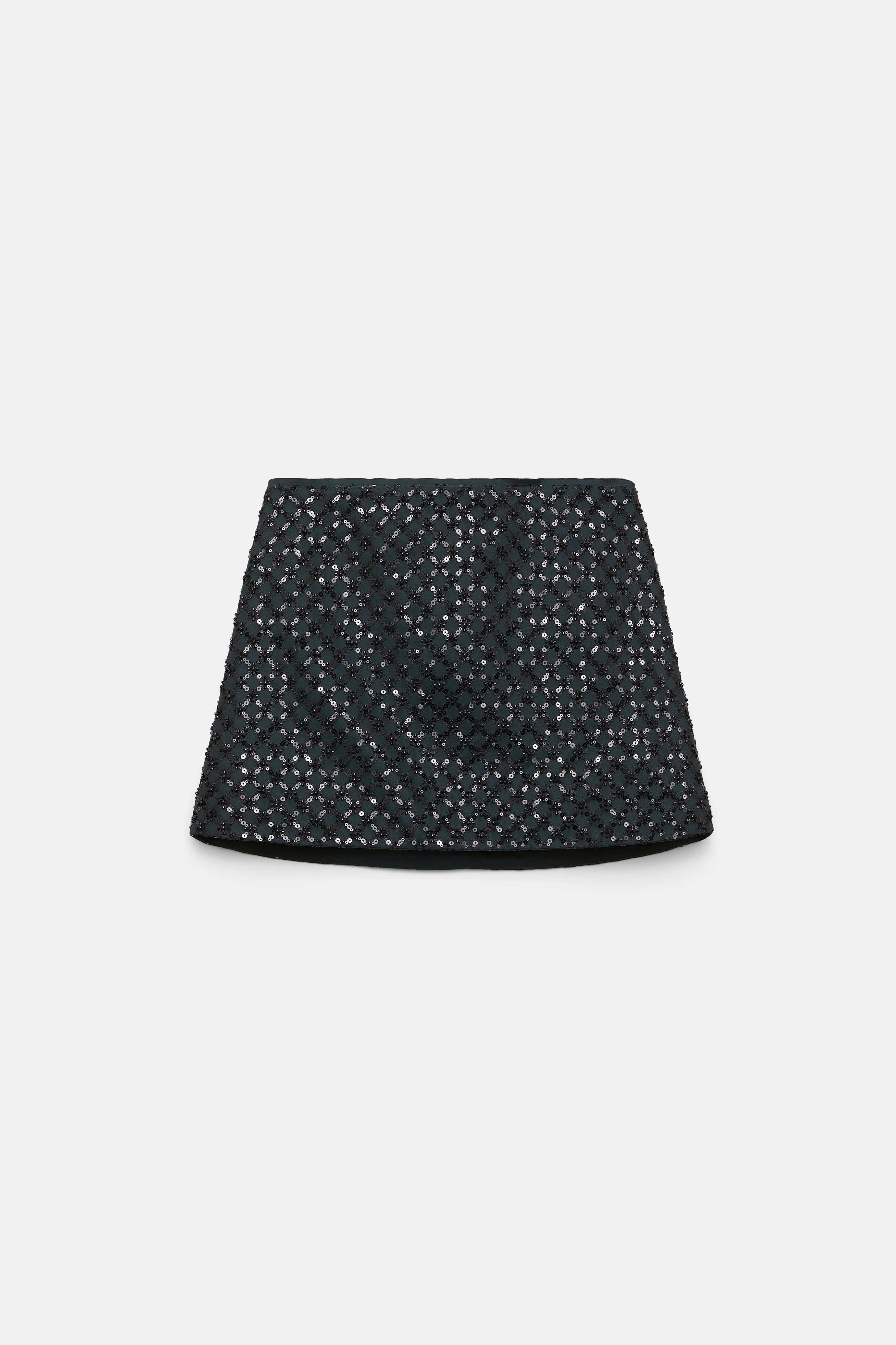 Dressed up in Duchesse: The mini-skirt is crafted in Duchesse and is embellished with floral sequin patterning. The skirt has an A-line silhouette and integrated shorts lining. The skirt can be worn as a set with the matching top. Material & Care - 87 % Polyester, 13 % Viscose - Sequin embellished A-line mini-skirt in Duchesse - Lining with integrated shorts - Dry clean only - No optical brighteners - Do not expose to extreme light - Shield from sharp items Size & Fit - Our Model is 176cm tall and wears a size 2. - Relaxed fit - Slight low waist