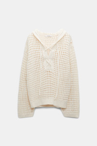 Call it a hoodie or the sweater of your dreams. The pointelle knit style is crafted in a cotton blend, with patterning reminiscent of intricate crochet. The relaxed sweater laces up the front and has comfortable wide long sleeves. Material & Care - 81 % Cotton, 18 % Polyamide, 1 % Elastane - Cotton blend textured knit hoodie with laced front - Rib knit trim - Wide long sleeves - Hand wash cold / Machine wash cold - Wash with similar colors Size & Fit - Our model is 180 cm tall and wears a size S - Relaxed fit - Wide sleeves - Dropped shoulders
