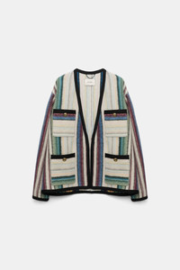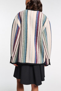 The striped jacket has an open front and is made from recycled wool. The jacket has patch pockets and buttoned cuffs. Material & Care - 73 % Wool, 24 % Polyamide, 3 % Other Fibres - Recycled wool jacket - V front - Patch pockets - Buttoned slit cuffs - Unlined Size & Fit - Our model is 178 cm tall and wears a size S - Slightly oversized