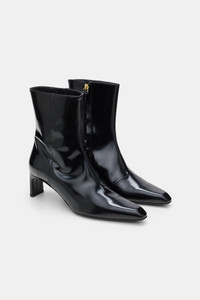 The mid-shine ankle boots have calfskin uppers and feature a chiseled toe. The boots have a zipper closure and set-back heel. Material & Care - 100 % Leather (calf) - Ankle boots - Mid shine calf leather upper - Calf leather lining - Nylon zipper with leather pull - Chiseled toe shape - Set-back heel - Shiny leather sole - D-Rose metal trim on sole Size & Fit - Fits true to size - Heel height (size 37): 5.5 cm - Shaft back height: (size 37): 17 cm