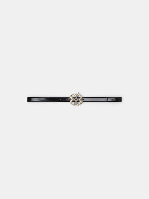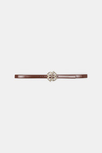 The shiny boxcalf belt has a D-rose buckle and adjustable push stud closure. Material & Care - 100 % Leather (calf) - Belt with D-rose buckle - Boxcalf outside and lining - Vintage icy gold-tone buckle - Tonal painted edges Size & Fit - Width: 2 cm - Size measurement taken from middle hole to buckle pin