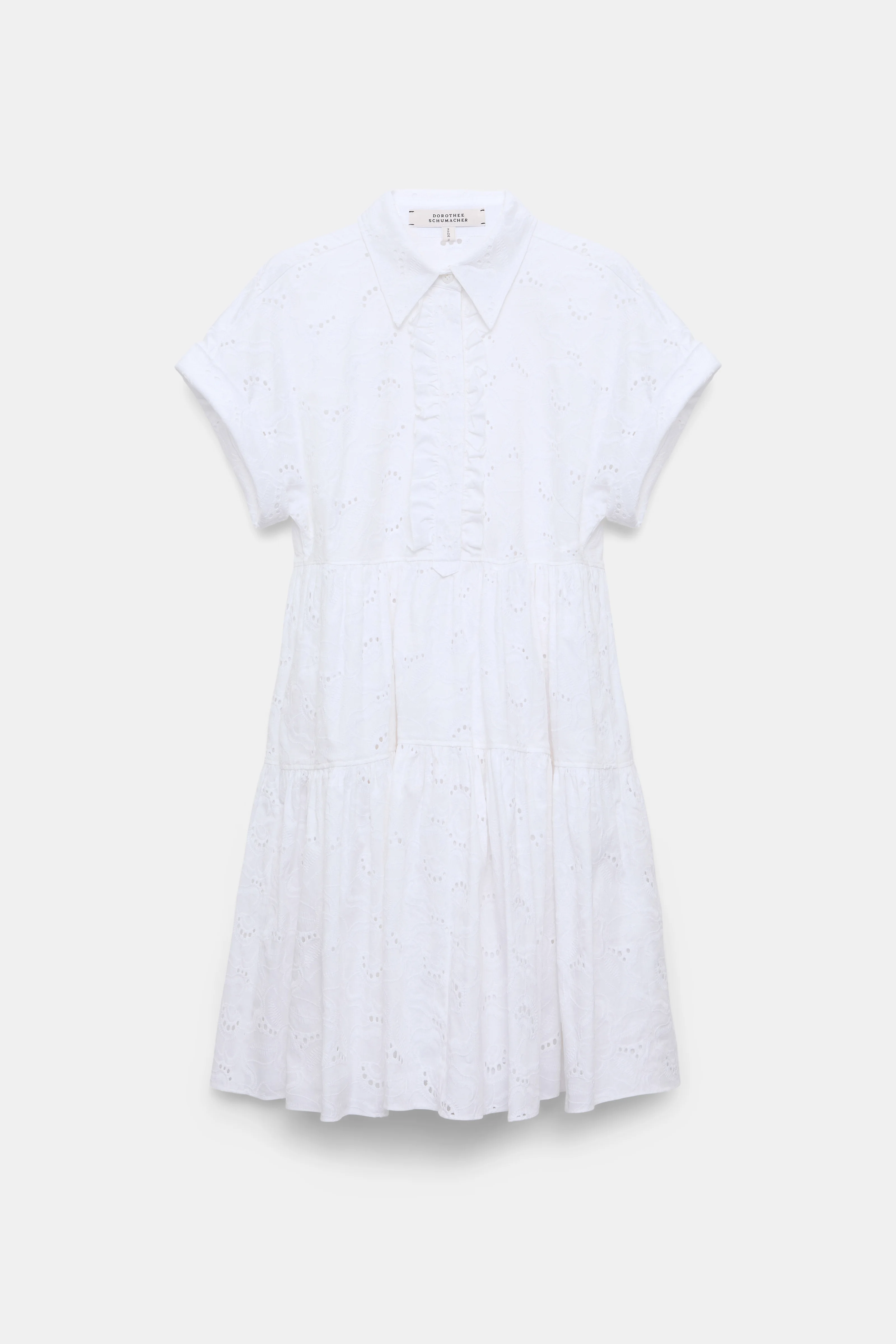Your go-to for all (summer) occasions: The stretch cotton dress is made from broderie anglaise and features a polo collar with hidden buttons and ruffle trim. The relaxed-fitting style has a short, tiered skirt. Material & Care - 97 % Cotton, 3 % Elastane - Short dress made from stretch cotton broderie anglaise - Tiered skirt - Polo collar with concealed button placket and ruffle trim Size & Fit - Relaxed fit - Dropped shoulders