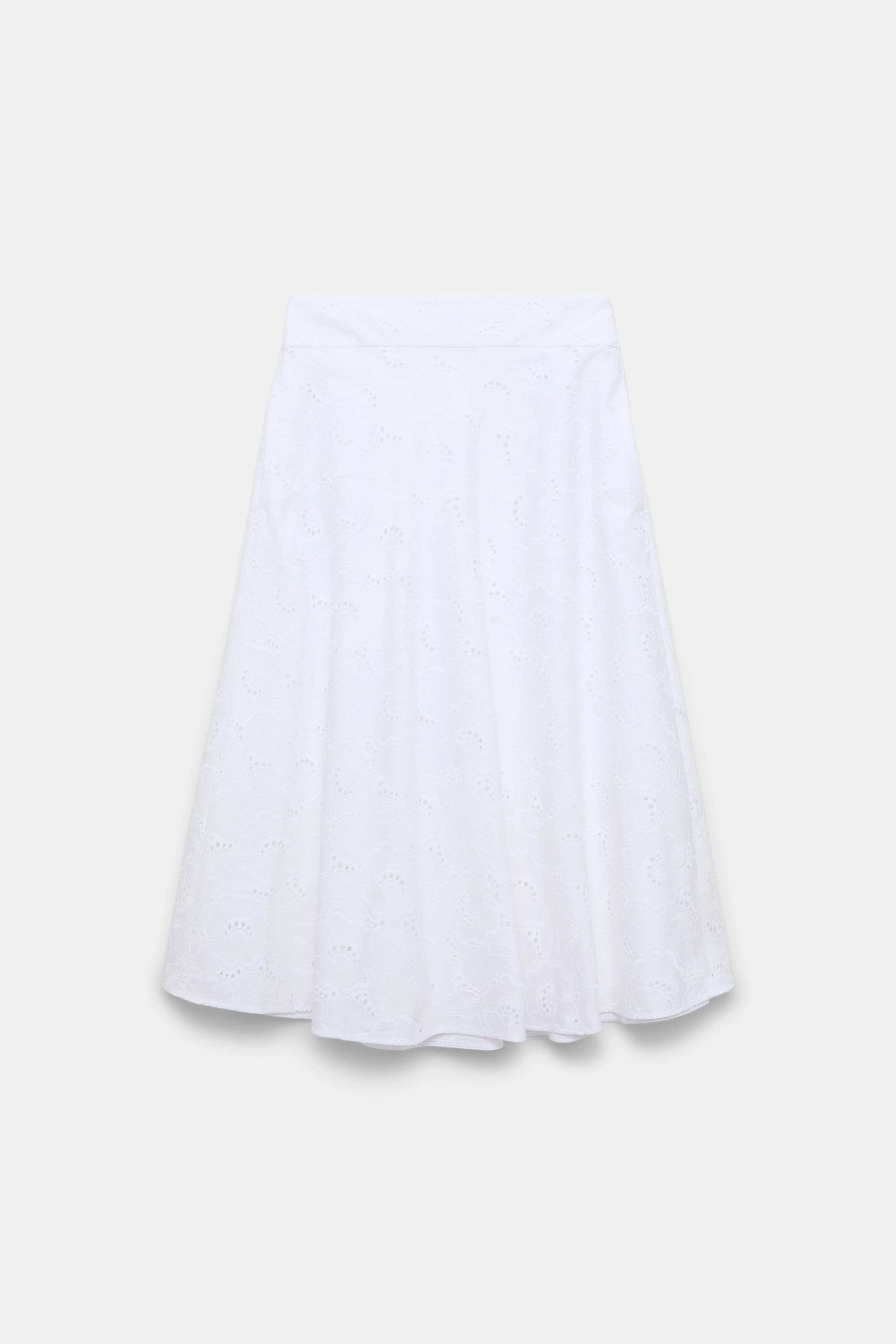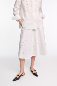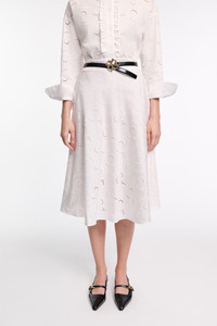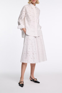 Your go-to for all (summer) occasions: The stretch cotton skirt is made from broderie anglaise. It fits close at the waist and falls into a flared swing skirt. Material & Care - 97 % Cotton, 3 % Elastane - Midi skirt made from stretch cotton broderie anglaise - Fitted waist - Flared swing skirt Size & Fit - Fitted at the waist - Swing skirt