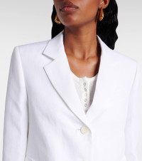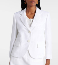 Product Details - Material: 59% polyester, 41% linen - Care instructions: dry clean - Made in Ukraine - Designer color name: Pure White - Item color: white - Closure: buttoned front - Pockets: flap pockets - Shoulder pads - Lining: 60% acetate, 40% viscose - Sleeve lining: 68% acetate, 32% polyester - Item number: P01033962 Size & Fit - True to size - Oversized shoulders - Shoulder pad inserts - Cinched waist - Falls below the hip - The model seen in the picture is 178cm-5'10" and wearing a size 1