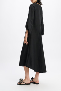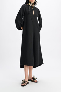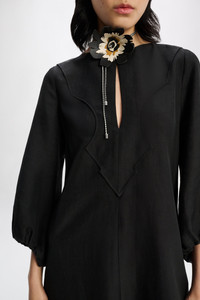 The prettiest way to do Western: The technical linen dress is defined by Western-inspired patterning. The A-line style has a slit front and 3/4-length sleeves which come into a gather at the cuff. Material & Care - 59 % Polyester, 41 % Linen - Western-inspired mid-length dress in technical linen - Round neckline with slit underneath - Hidden side zip closure - WE CARE - Fabric supplier produces according to 4sustainability - WE CARE - The polyester content is produced in accordance with the Global Recycled Standard (GRS) - Western-inspired loop on the back - WE CARE - Fabric supplier produces according to 4sustainability - WE CARE - The polyester content is produced in accordance with the Global Recycled Standard (GRS) - Hand wash programe / Machine wash - Wash with similar colors Size & Fit - Our model is 179 cm tall and wears a size S - Fitted - Flared skirt - Voluminous sleeves