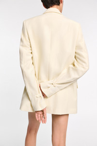 Made to mix and match. Introducing your new season suiting: The blazer is made from technical linen and has a slight oversized fit. The blazer features classic styling and a buttoned loop detail at the wrist. The blazer can be combined with the matching pants or micro mini. Material & Care - 59 % Polyester, 41 % Linen - Blazer in technical linen - Notched lapel - Flap pockets - Chest pocket - Buttoned loop on the sleeve - Dry clean only - No optical brighteners - Do not expose to extreme light - Shield from sharp items Size & Fit - Our model is 178 cm tall and wears a size S - Slightly oversized