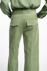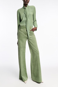 The form-fitting flares are detailed in a soft cotton corduroy mix and come with an unfinished hemline for custom tailoring. The pants can be worn as a suit with the matching corduroy blazer. Material & Care - 74 % Cotton, 24 % Modal, 2 % Elastane - Flared corduroy pants - Wide waistband with extended tab closure - Diagonal side pockets - Back welt pockets - Comes with an unfinished hemline so you can custom tailor to your desired length - Hand wash cold / Machine wash old - Wash with similar colors Size & Fit - Our model is 179cm tall and wears a size 2 - Form-fitting