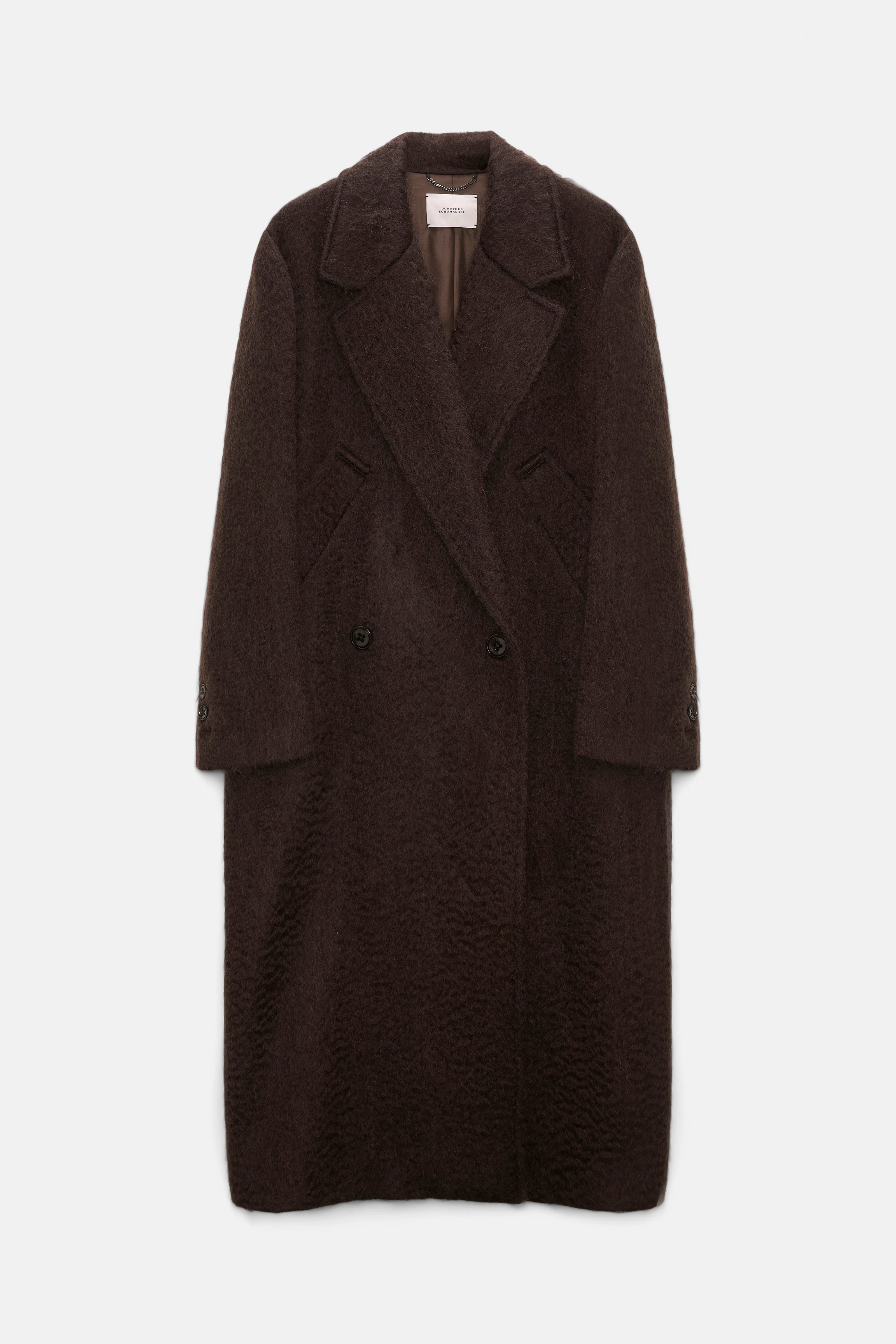 Yes. It is as cozy as it looks. The wool-mohair coat is oversized and has raw finish edges and has a double-breasted front which closes with two buttons. Material & Care - 47 % Wool, 36 % Mohair, 13 % Polyacrylic, 4 % Polyester - Classic wool-mohair coat - Double-breasted button front - Wide notched collar - Flap pockets - Buttoned slit cuffs - Dry clean only - No optical brighteners - Do not expose to extreme light - Shield from sharp items Size & Fit - Oversized