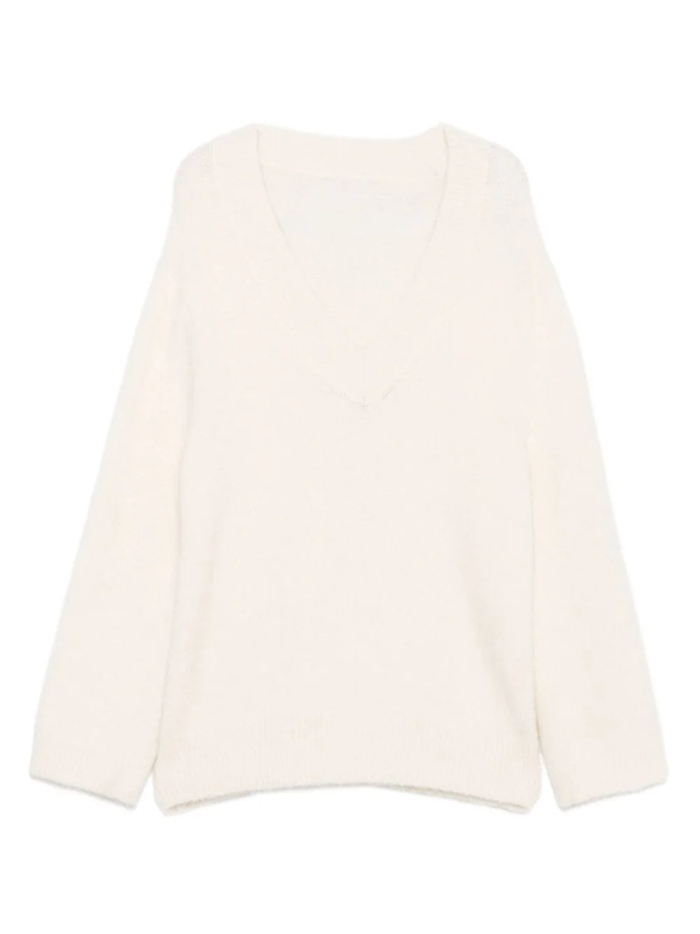 V-neck sweater Highlights - Off-white - V-neck - Long sleeves - Straight hem Imported Composition Fabric 100% SIZE & FIT Model measurements Height 5 ft 10 in(1.77 m) Bust/Chest 33.07 in(84 cm) Hips 37 in(94 cm) Waist 24.8 in(63 cm) Washing instructions Dry Clean Only