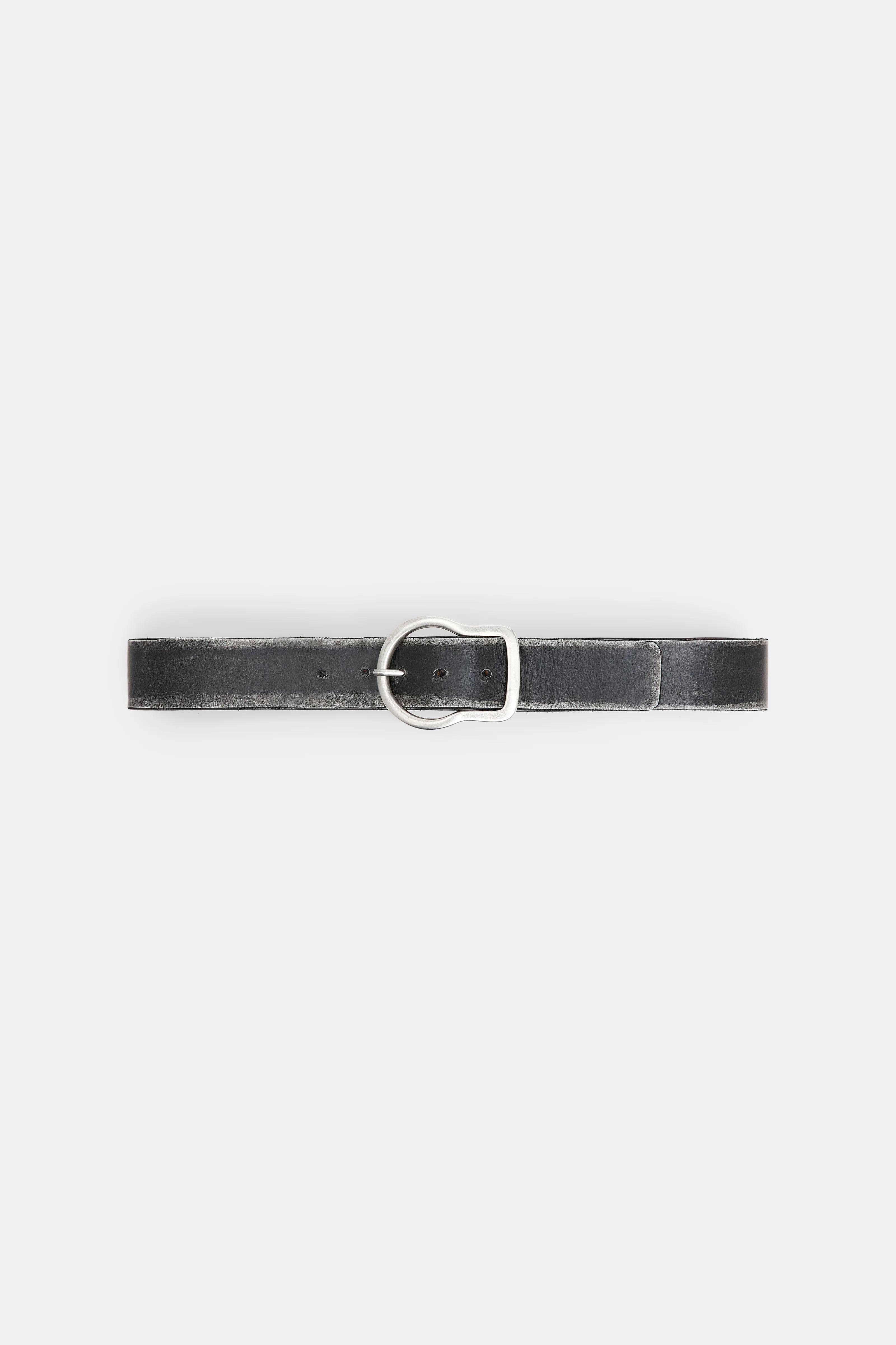 Crafted in brush-off effect calfskin with no visible stitching, the leather belt channels a sleek, vintage look. The belt has a silver-tone signature buckle closure. Material & Care - 100 % Leather (calf) - Brush-off effect leather belt - Brush-off calfskin - Distressed look - Cuoio lining - 4 cm signature buckle - Painted edges Size & Fit - Width: 4 cm - Size measurement taken from pin to middle hole