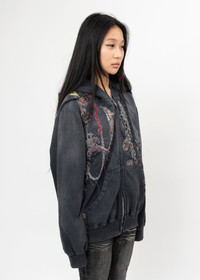 BLACK DOUBLET EMBROIDERED CHAIN ZIP-UP HOODIE