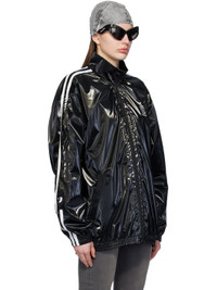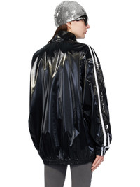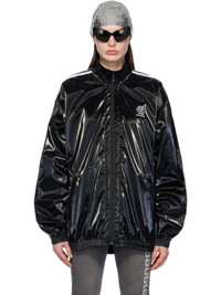 Coated polyester taffeta jacket. · Stand collar · Zip closure · Logo embroidered at chest · Welt pockets · Elasticized hem and cuffs · Knit stripes at sleeves · Graphic embroidered at sleeves · Full jersey lining Supplier color: Black