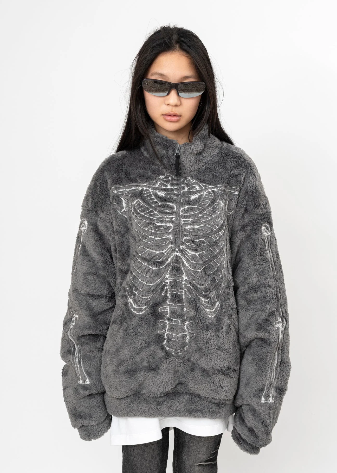 GREY DOUBLET GLOWINTHEDARK SKELTON FLEECEJACKET