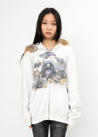 IVORY DOUBLET FURRY COLLAR ZIP-UP HOODIE