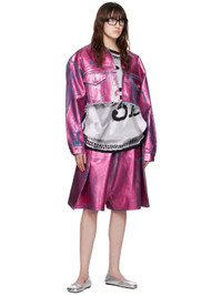Indigo-dyed metallic foil-coated stretch denim shorts. Metallic thread detailing throughout. · Belt loops · Five-pocket styling · Button-fly · Leather logo patch at back waistband · Logo flag at back · Logo-engraved antiqued silver-tone hardware Supplier color: Pink 67% cotton, 22% rayon, 11% polyester. Made in Japan 241038F088001