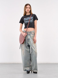 DOUBLET x BETA POST bag in brown & black, fan case design, leather construction, printed graphics & logo, contrast topstitching, detachable shoulder strap, top zip closure, two interior pockets, branded fan include. Made in Indonesia 100% Cow Leather One Size