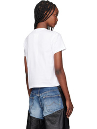 Cotton jersey T-shirt. - Rib-knit crewneck - Embroidered text at chest - Boucle graphic applique at patch pocket Supplier color: White