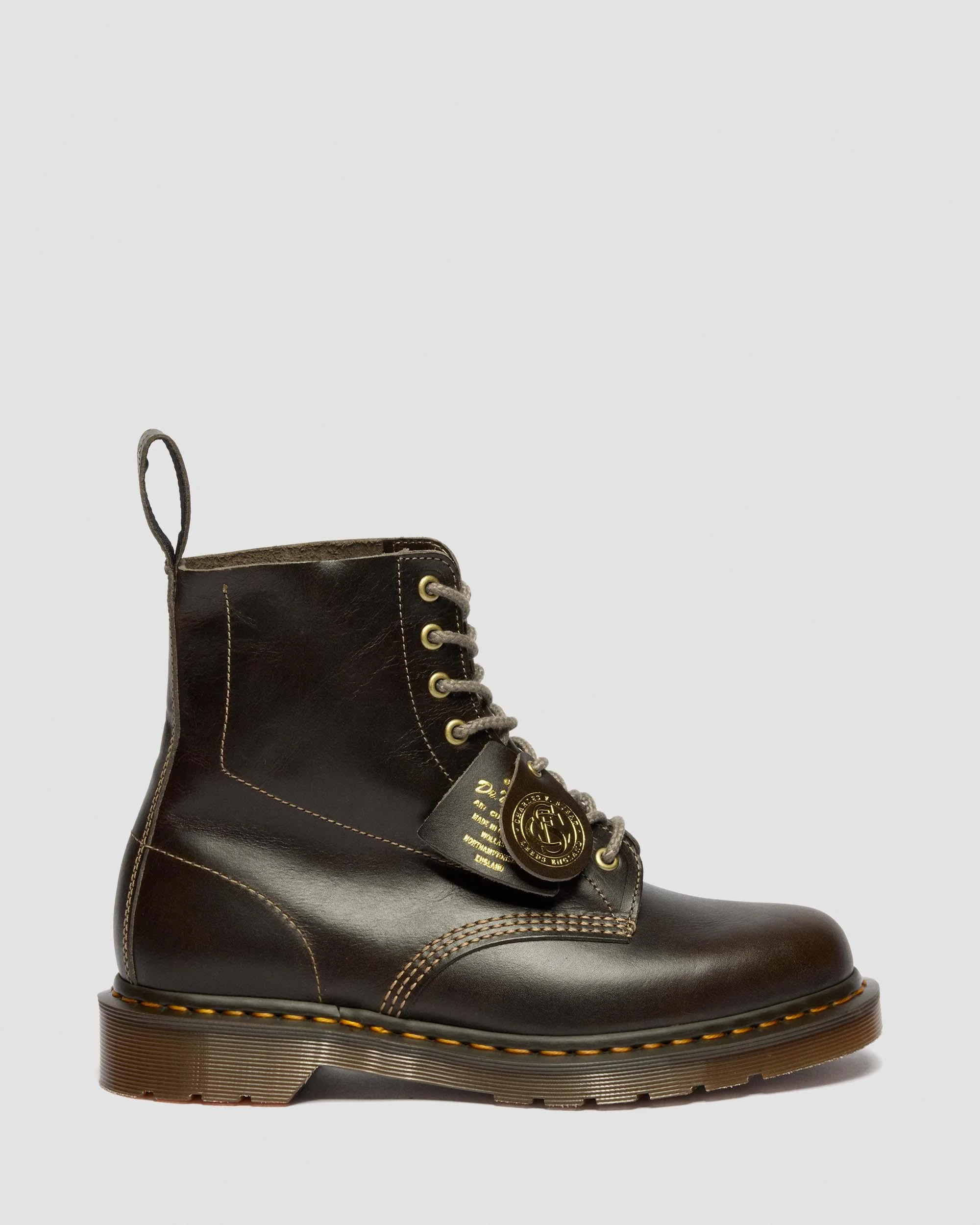 The 1460 Pascal boot exemplifies the legacy of our original boot. Retaining the iconic 8-eye silhouette, it carries all the hallmarks of Dr. Martens heritage such as the scripted heel loop, stitching, and grooved edges. This edition is crafted in a Classic Calf leather from C.F. Stead tannery in Leeds, UK. The sepia gray edition features antique gold hardware, ecru stitching and grey laces adding a subtle contrast. The boot is set atop a vintage trans DMS sole, with yellow stitching on a bitter choc welt, complete with an embossed swing tag unique to this release, and a debossed leather heel loop. The burgundy edition is finished with a classic black and gold heel loop, thin round cord black laces and a smoke DMS sole with black welt Proudly Made in England, the 1460 Pascal is a boot built to be worn, shaped, and lived in for years to come. Material Premium Calf leather with natural characteristics Construction Goodyear Welted - the upper and sole are heat-sealed and sewn together, providing more comfort and durability for years to come. Product code 42468021