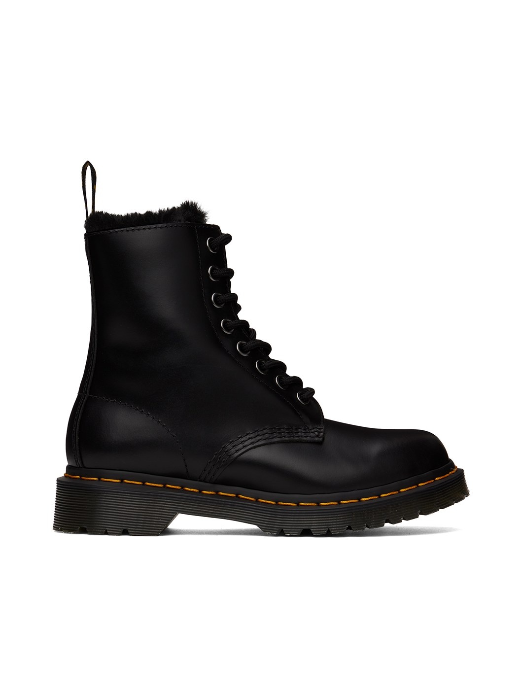 Ankle-high wax-coated buffed leather boots in black. · Lace-up closure · Logo-woven pull-loop at heel collar · Signature yellow stitching at heat-sealed Goodyear welt · Faux-fur lining in black · Signature treaded Air Cushion rubber sole Supplier color: Dark grey atlas Upper: leather. Sole: rubber.