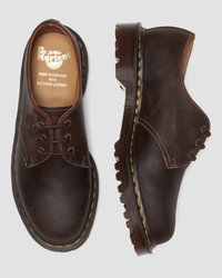 This 1461 is a Made in England style, hand-crafted by our Cobbs Lane factory in Wollaston, Northamptonshire, England. Considered details, like antiqued eyelets, a stamped leather tag, striped hiker laces, and premium C.F. Stead leather, bring a high-fashion feel to the style of our 3-eye silhouette. Our partnership with CF Stead & Co. brings together two British heritage brands for footwear steeped in refined sophistication and history. Founded in 1904, CF Stead is a tannery in Leeds, West Yorkshire specializing in high-quality, imported, naturally-tanned skins — and we've been using their leather since 1970. - Made with Wax Commander by C.F. Stead, a heavyweight leather with a deeply waxed finish and a vintage feel - Built on the iconic and comfortable Dr. Martens AirWair™ air-cushioned sole, with a commando tread - The sole is secured using one of the most durable construction methods available: the Goodyear welt - Retains classic Docs DNA, with yellow welt stitching, grooved sides and a scripted heel-loop Material Heavy weight deeply waxed suede with distressed two tone look Construction Goodyear Welted - the upper and sole are heat-sealed and sewn together, providing more comfort and durability for years to come. Product code 31861749