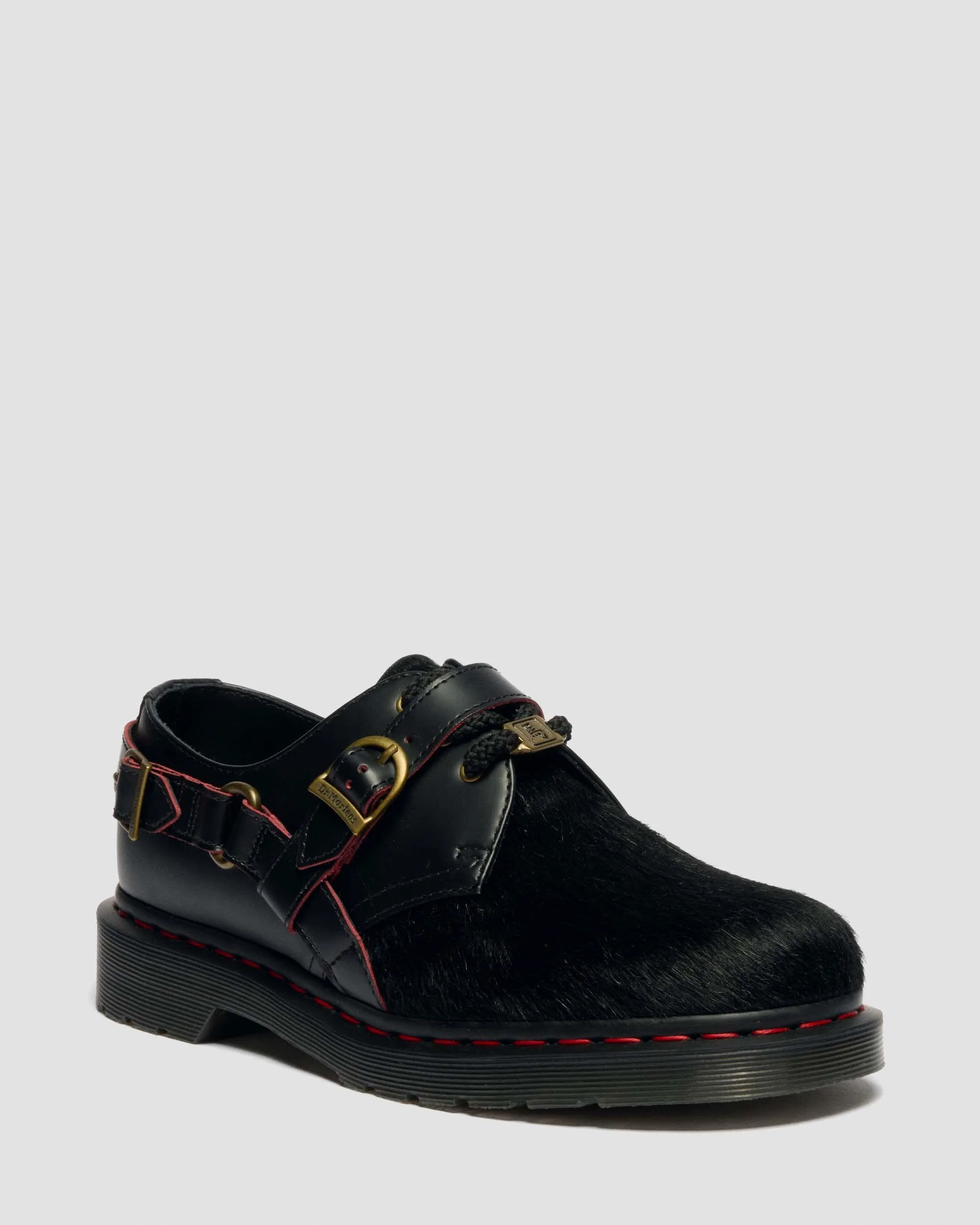 Our 1461 3-eye shoe is a versatile classic that works as hard as you do. This limited-edition Lunar New Year pair celebrates the Year of the Horse. Made with Smooth leather and a statement Hair On leather vamp. Adorned with bridle-inspired straps and antique gold hardware — plus lucky red welt stitching. Two-tone Smooth Slice leather also provides pops of red across the upper. Our grooved DMS sole offers air-cushioned all-day comfort. Construction Goodyear Welted - the upper and sole are heat-sealed and sewn together, providing more comfort and durability for years to come. Product code 42418001