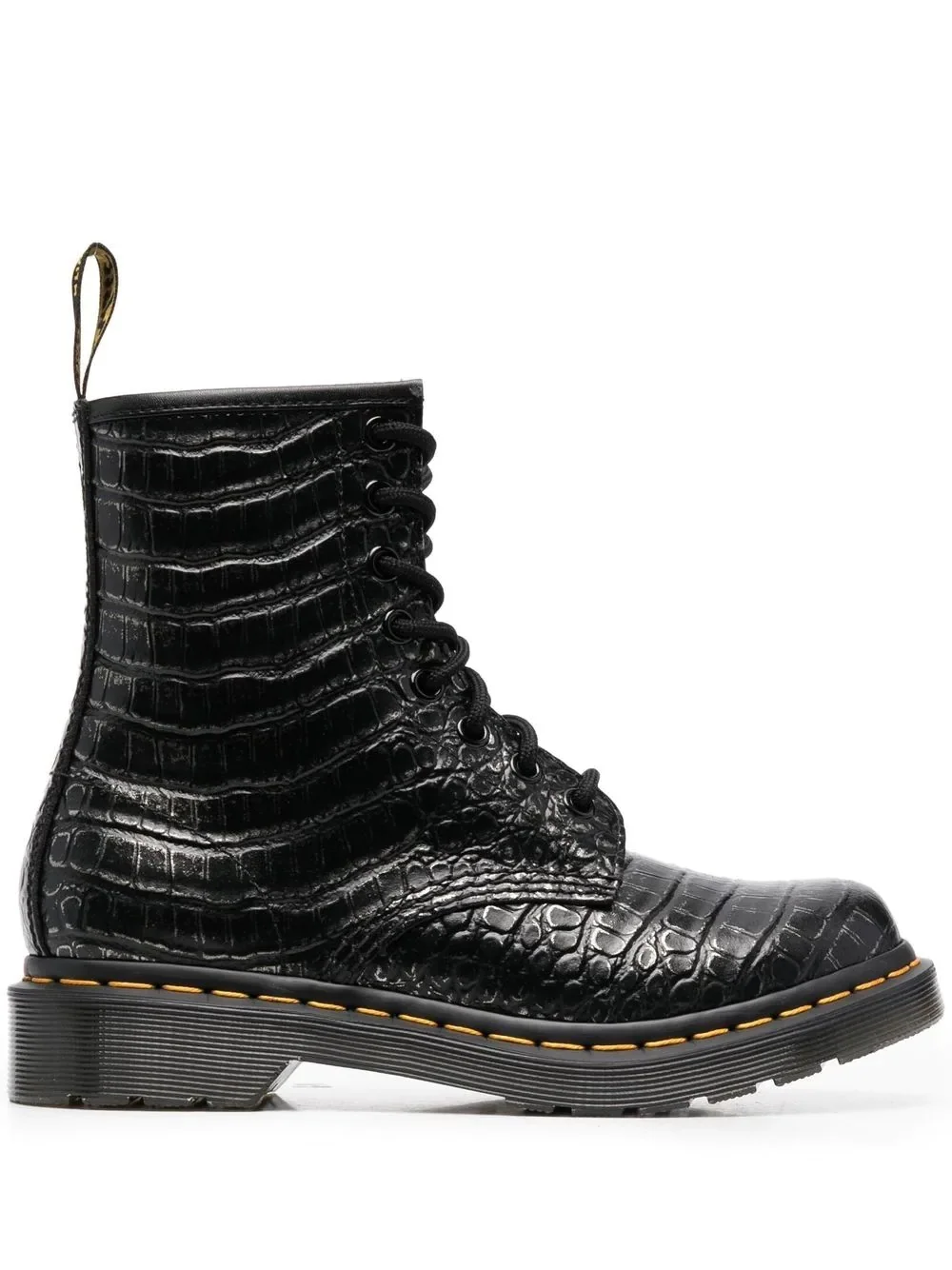 ankle-length boots black leather crocodile effect pull-tab at the heel round toe front lace-up fastening chunky rubber sole Imported Composition Leather 100% SIZE & FIT Measurement HEEL 1.37 in(3.5 cm) HEIGHT 5.9 in(15 cm) Sole height 0.78 in(2 cm)
