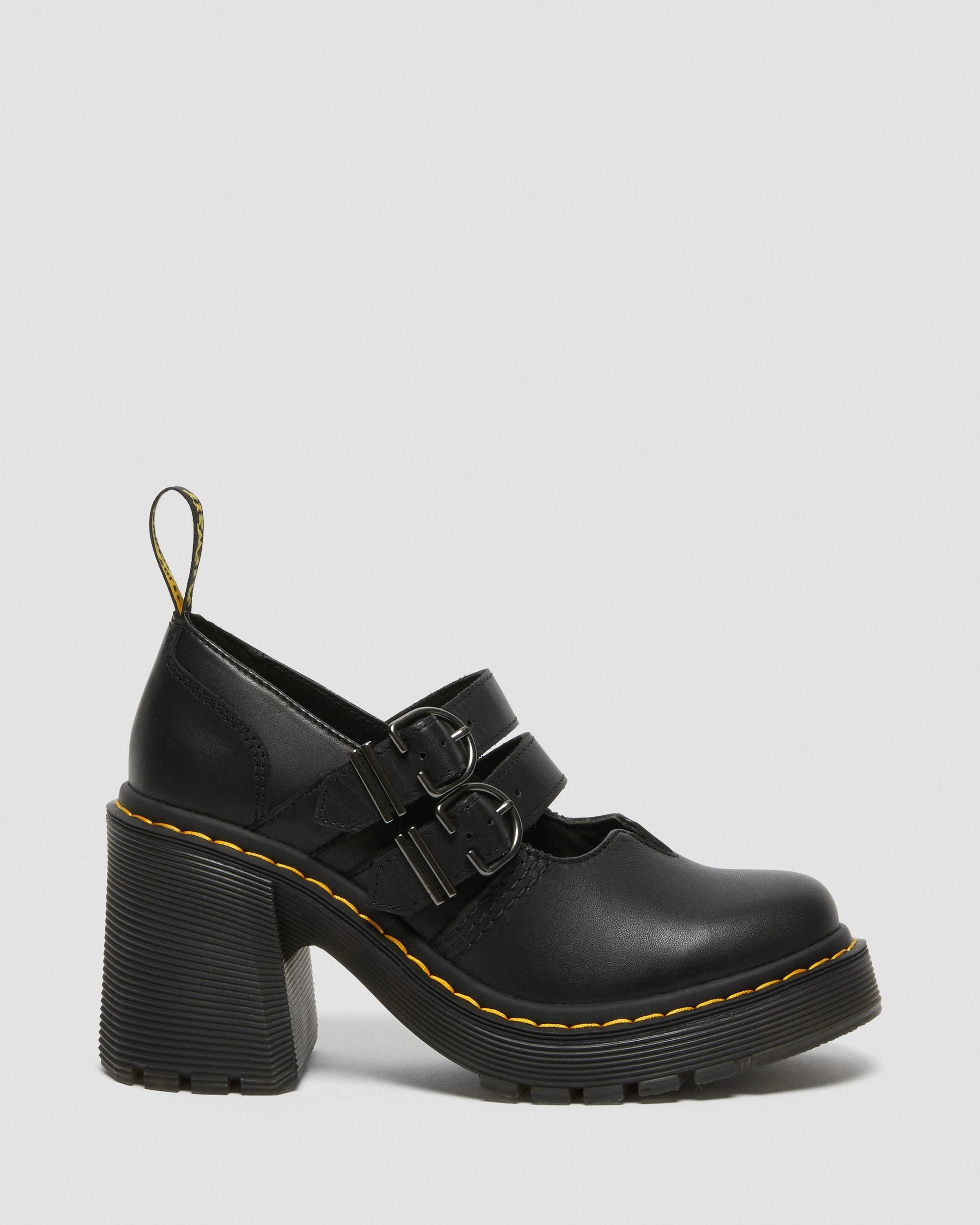 There are heeled shoes. And then there's the Eviee. Stacked on an empowering 3 3/4 inch Ardern heel, the shoe takes inspiration from our archival 8065 double strap buckle Mary Jane shoe. Built from Sendal leather, it's fitted with adjustable buckles, standout slit detailing and our signature puritan stitch over the toe paneling. The shoes are finished with our classic black and yellow heel loop and yellow stitching. - Two adjustable buckle straps - Sendal is a semi-aniline, natural-looking nappa leather with a smooth full-grain finish - Made with a comfortable, durable cemented construction - Platform height: 1 1/8 in; Heel height: 3 3/4 in Material This semi-Aniline, natural-look Nappa Leather features a smooth full-grain finish. Construction Cemented - the sole is cemented to the upper, a durable and flexible construction for all day comfort. Product code 27371001