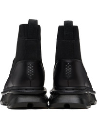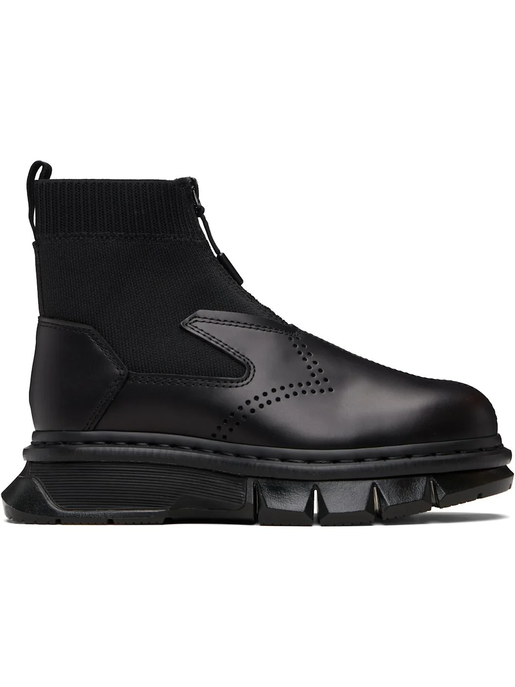 Ankle-high buffed leather and knit boots. · Perforated detailing at vamp · Zip closure · Rib-knit collar · Pull-loop at heel collar · Jersey lining · Topstitching at heat-sealed Goodyear welt · Treaded Air Cushion rubber sole Supplier color: Black Upper: leather, textile. Sole: rubber. Made in Viet Nam 261399F113003