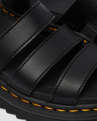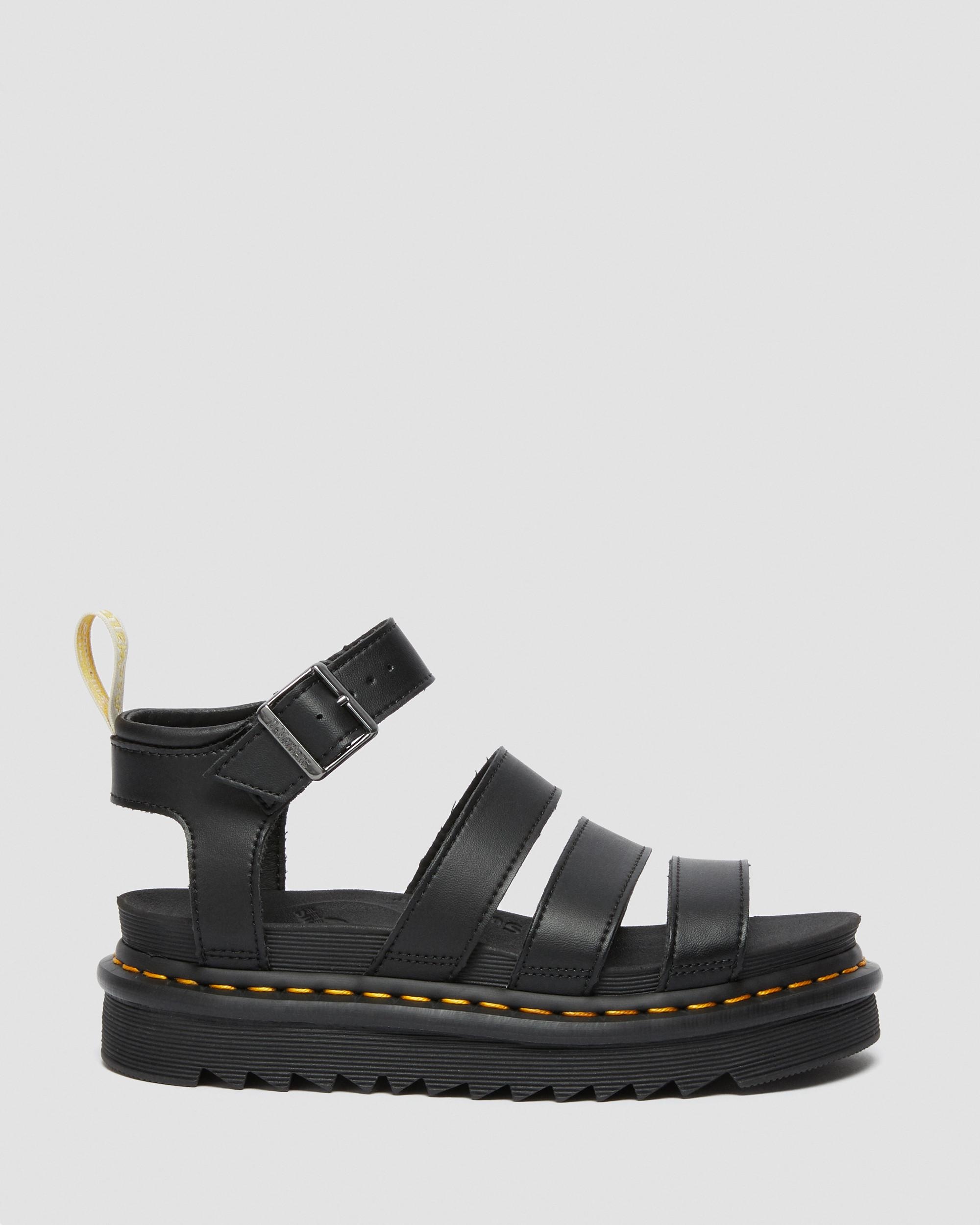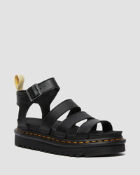 Blaire is our latest spin on the gladiator: an airy Dr. Martens sandal with a slight wedge for height, a padded collar for comfort, a lightweight ripple sole and — unlike most sandals — a sturdy, durable Goodyear welt. Generous fit and a comfortable wear. We recommend you size down. - 100% vegan - Adjustable buckle strap at ankle - Slight wedge for an empowering boost - Arched footbed - Durable Goodyear welt - For half sizes, we recommend going down a size - Platform height: 1 1/2 in; Heel height: 1 7/8 in Material Vegan-friendly. A synthetic material, which is soft and supple, and has a subtle finish. Learn more about our vegan line up. Product code 23806001