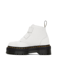 Ankle-high pebble grained leather boots in white. · Graphic hardware at pin-buckle closure · Padded tongue and collar · Logo-woven pull-loop at heel collar · Mesh lining · Topstitching in yellow at heat-sealed Goodyear welt · Treaded Air Cushion rubber sole · Gunmetal-tone hardware · Platform: H2 in Supplier color: White Upper: leather. Sole: rubber.