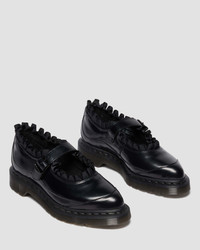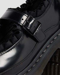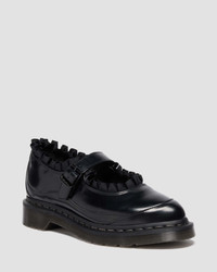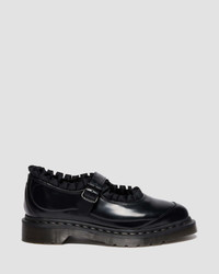 Point and frill. The Elphie Mary Jane Frill shoe harmonizes soft-edged fluidity and tapered construction for a finish that’s delicately strong. The upper is crafted from Polished Smooth leather with white stitching and a single adjustable strap with an antique black buckle. Frills line the shoe’s inner, while a tapered toe adds a sharper edge. A smoke DMS sole with classic grooving finishes the silhouette. Material A twist on the classic Dr. Martens leather: durable, with a smooth and polished finish.For tips on how to break in your Docs visit our Guide." Construction Goodyear Welted - the upper and sole are heat-sealed and sewn together, providing more comfort and durability for years to come. Product code 42048001