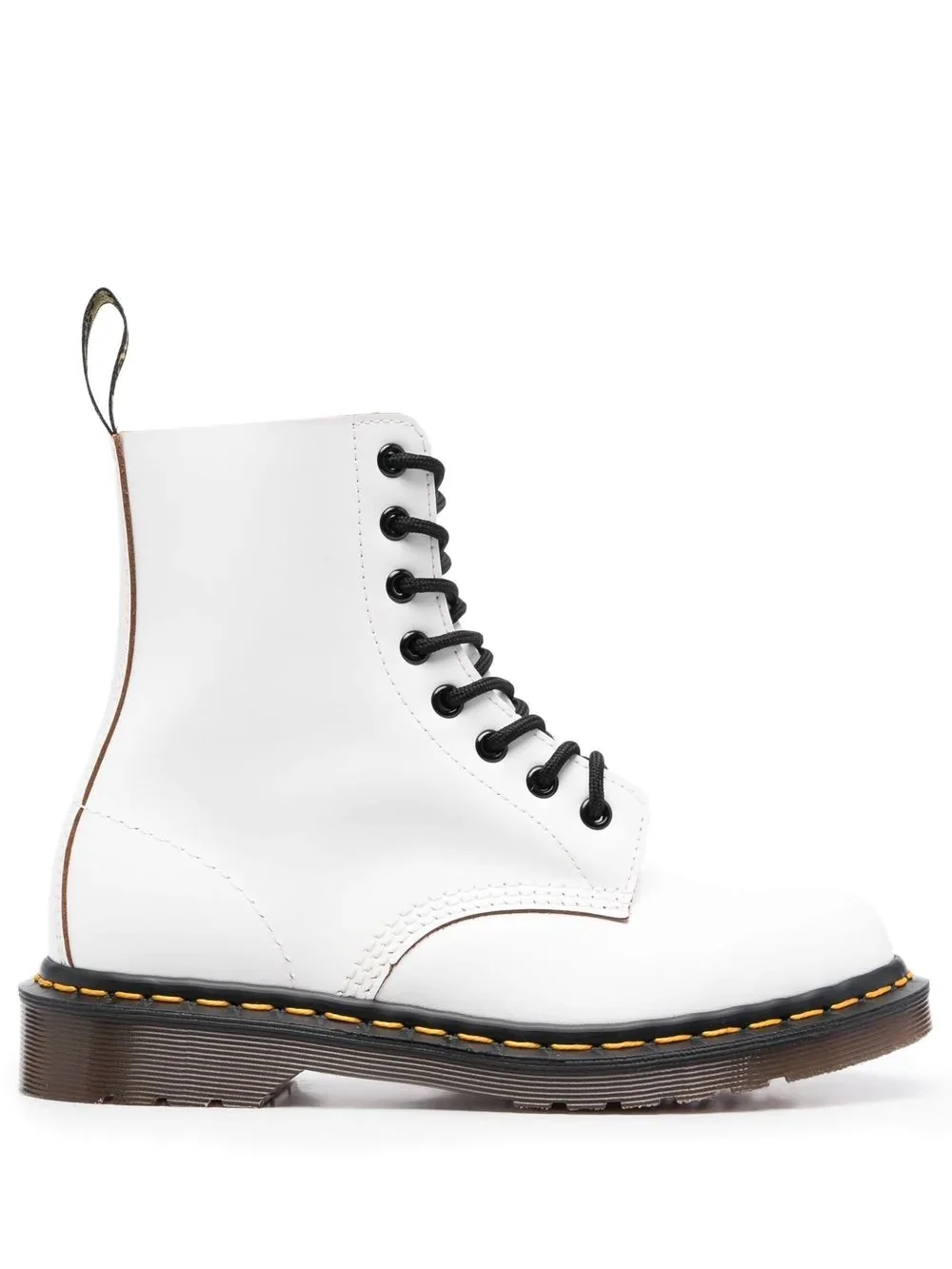 Vintage 1460 cargo boots white/black leather contrast stitching round toe front lace-up fastening ankle-length pull-tab at the heel chunky rubber sole Made in United Kingdom Composition Leather 100% SIZE & FIT Measurement HEEL 1.18 in(3 cm) HEIGHT 6.29 in(16 cm) Sole height 0.59 in(1.5 cm)