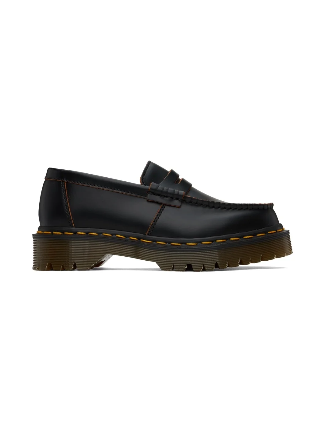 Buffed leather loafers in black. · Moc toe · Cutout at vamp strap · Suede lining · Yellow topstitching at heat-sealed Goodyear welt · Signature treaded Air Cushion rubber sole Supplier color: Black