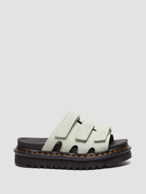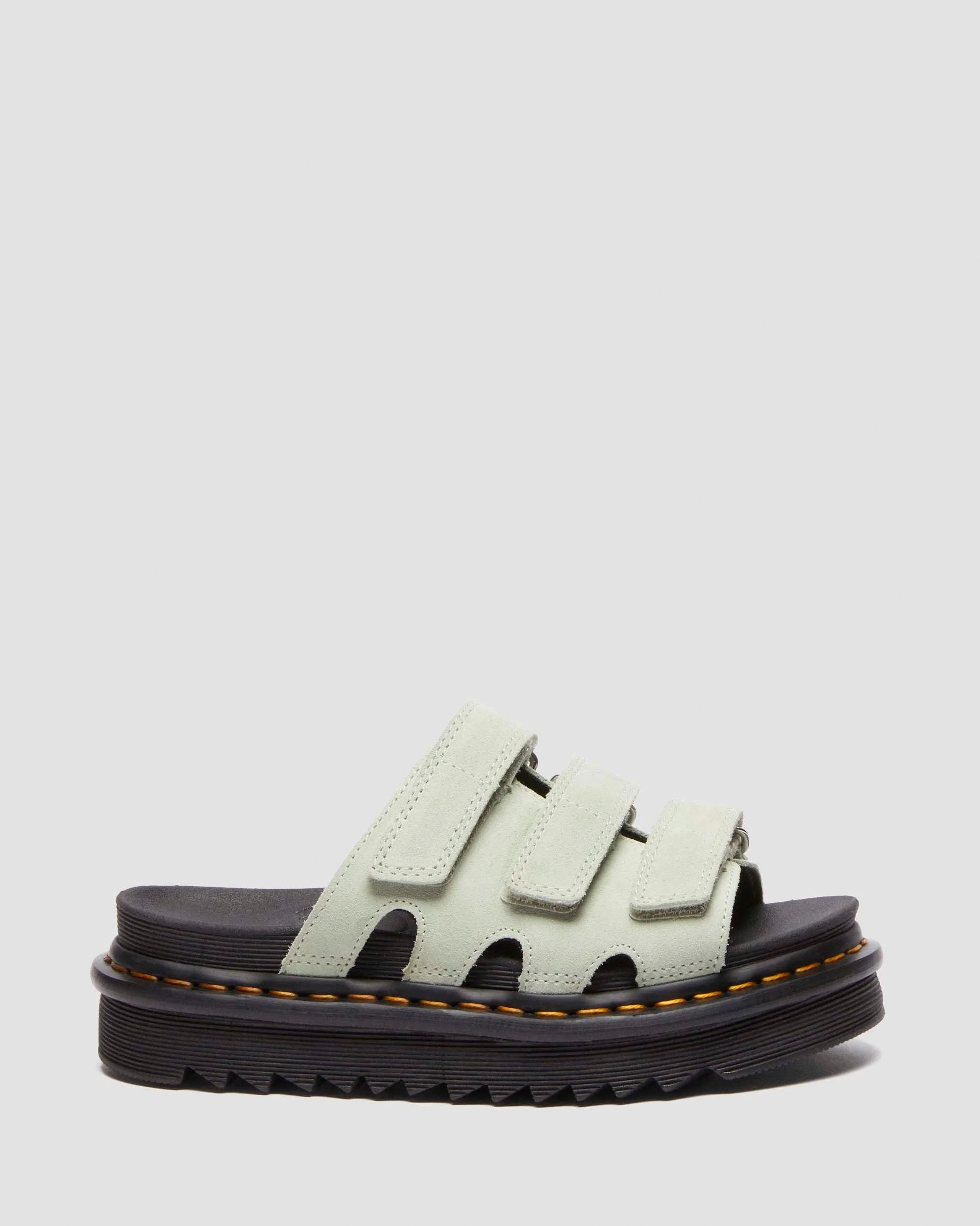 Slide into summer. Our new Raine Slide sandal combines a slider�s easy on/off convenience with our lightweight EVA Zebrilus sole and a comfortable SoftWair footbed. The upper has 3 adjustable Ripstop straps to help you find the perfect fit. The sole is marked with grooving and secured with DM�s yellow welt stitching. Material E.H. Suede - a classic leather with a silky to touch texture. Construction Goodyear Welted - the upper and sole are heat-sealed and sewn together, providing more comfort and durability for years to come. Product code 40521300