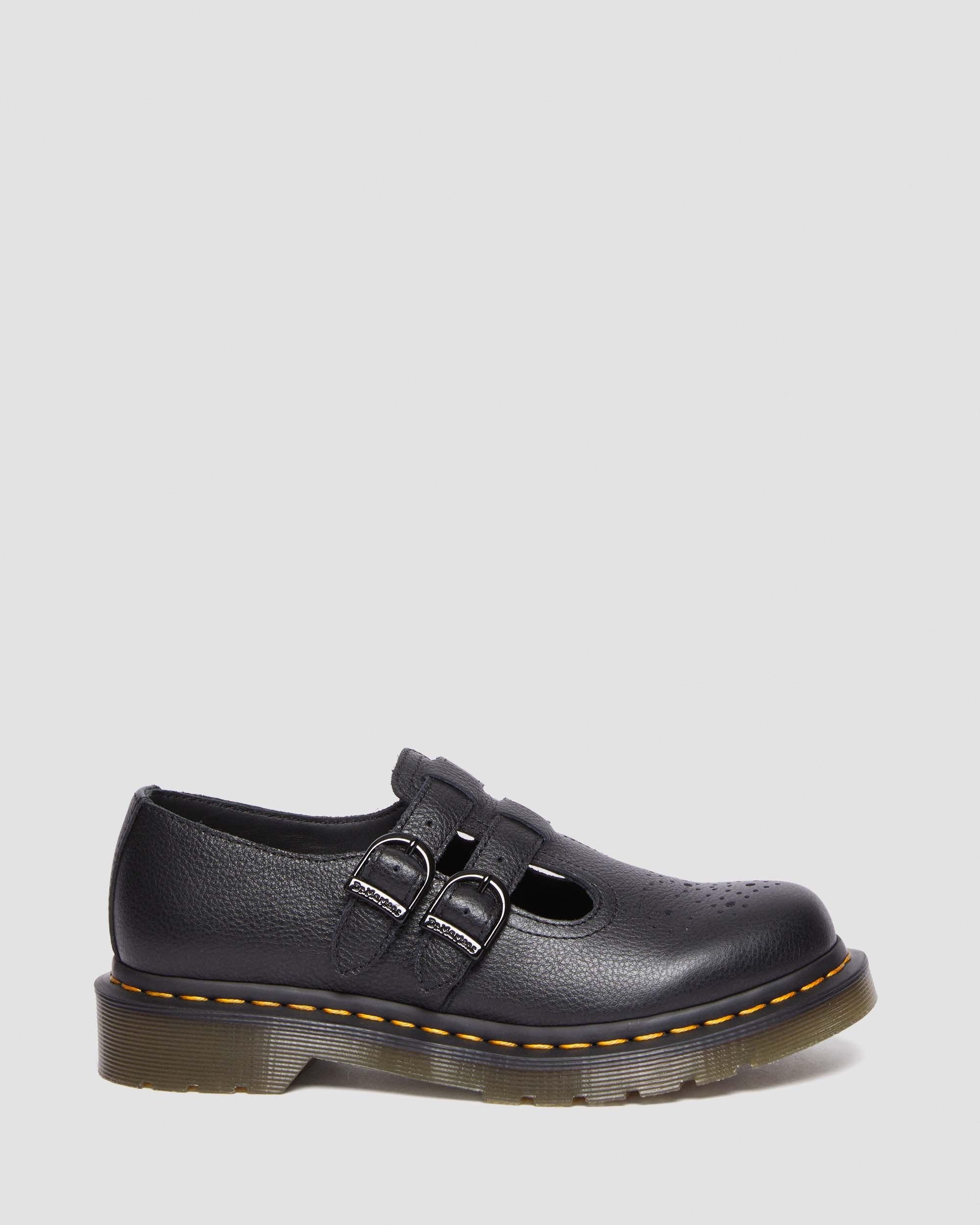 Neutral summer tones — worn in from the first step, so you can make the most of the longer days. We've built our grunge-essential 8065 Mary Jane shoe using soft, pebbled Virginia leather. The shoe is made with over 6 decades of DM's construction heritage: welted on a translucent grooved DMS outsole and secured with our signature yellow welt stitching. The two-buckle silhouette is detailed with antique gold hardware and a subtle bitter choc welt. - A classic T-bar fastening meets a rugged AirWair sole: the 8065 shoe turned the tradition of impractical women's footwear on its head in the 80s - Virginia is a soft, fine-grain leather that's treated to make it smooth and supple - A pillar of DM's construction. Our Original and most recognizable sole. A height of 1 1/8 inch — marked by traditional DMS tread pattern that's unique to Dr. Martens. One of our most flexible soles, well known for its comfort and stability - Construction - Made with our Goodyear-welted lines are heat-sealed at 700˚C and reinforced with our signature welt stitch - Footbed - Wider and a more rounded toe shape Material Virginia - a soft, fine-grain leather that is treated to feel smooth and supple, our Virginia Leather is typically dyed, and is offered in a variety of bright colors. Construction Goodyear Welted - the upper and sole are heat-sealed and sewn together, providing more comfort and durability for years to come. Product code 30692001