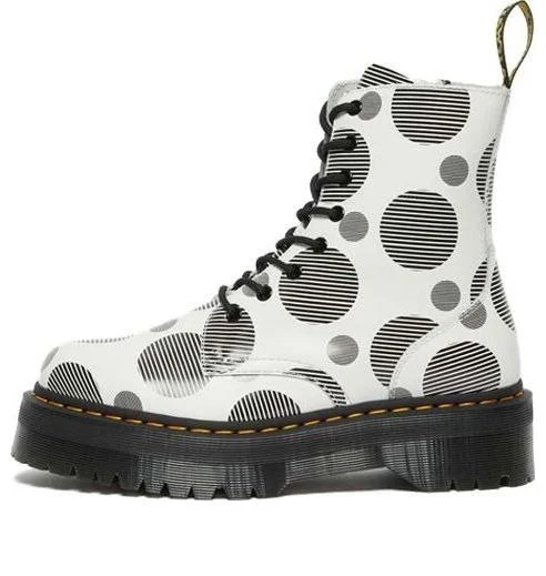 (WMNS) Dr. Martens Jadon Polka Dot Smooth Leather Platform Boots 'White Black' 26882101