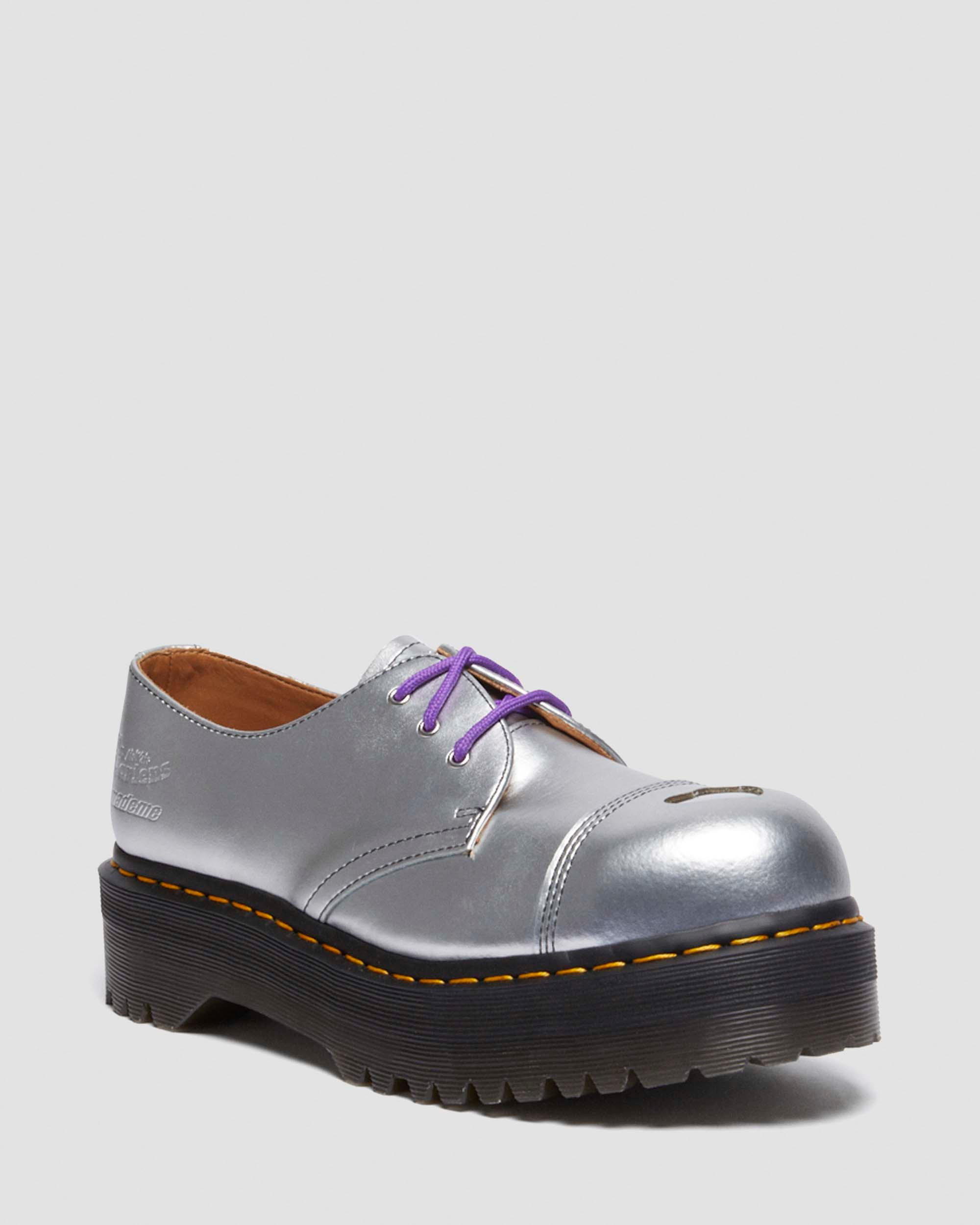 Unapologetic, fearless, authentic. There’s an undeniable crossover in spirit between Dr. Martens and MadeMe. Since launching the women’s streetwear label MadeMe in 2007, Magee has transformed it into a ubiquitous New York brand and an inclusive community that occupies a still-revolutionary space in the male-dominated streetwear industry. Dr. Martens, whose boots and shoes have been at the feet of a long line of riot grrrl disruption, makes a natural partner for MadeMe as it continues its tradition of rebellion. Our first collaboration introduces a rework of our 1461 shoe stacked on a platform Quad sole with a steel toe exposed through a playful heart-shaped cut-out. There’s dual branding present throughout, and the sole is secured with our classic yellow welt stitching. - Second off the DM's production line. Designed for workshops and factory floors — elevated on streets and stages. The 1461 shoe is a 3-eye silhouette championed for its versatility. - Alumix is a PU-coated leather with a satin, metallic-like finish. Wipe clean with a damp cloth and use Dr. Martens Patent Cleaner to restore shine. - Built to embolden. Our towering Quad sole takes our silhouettes to new heights — for people who aren't afraid to stand tall. - Our Goodyear-welted lines are heat-sealed and reinforced with our signature welt stitch. Construction Goodyear Welted - the upper and sole are heat-sealed and sewn together, providing more comfort and durability for years to come. Product code 32162040