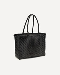 The Big Weave Tote Bag by Dragon Diffusion is a refined and practical accessory made of woven buffalo calfskin that creates vertical lines, characterizing the Weave Big model. This square basket design features a wide entrance without closures, enhancing its convenience of use. Fully unlined, the bag is embellished with a St. Christopher medal hand-stitched on the inside, a symbolic detail of protection and craftsmanship. A versatile model, perfect for any occasion, it combines elegance and functionality. DETAILS - Sku: DGS68805_BLACK - Season: SS26 - Dimension: 33x24x16 - Composition: GENERAL 100% Buffalo - MADE IN INDIA