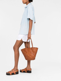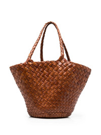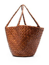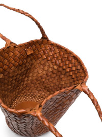 Egola interwoven tote bag from DRAGON DIFFUSION featuring tan brown, calf leather, interwoven design, main compartment, open top and two top handles. - depth: 20.0 centimetres, height: 25.0 centimetres, strap: 25.0 centimetres, width: 42.0 centimetres - Color: BROWN - Made in: India - Designer Style ID: 8026 TAN Composition and care Outer Composition Calf Leather: 100.0%