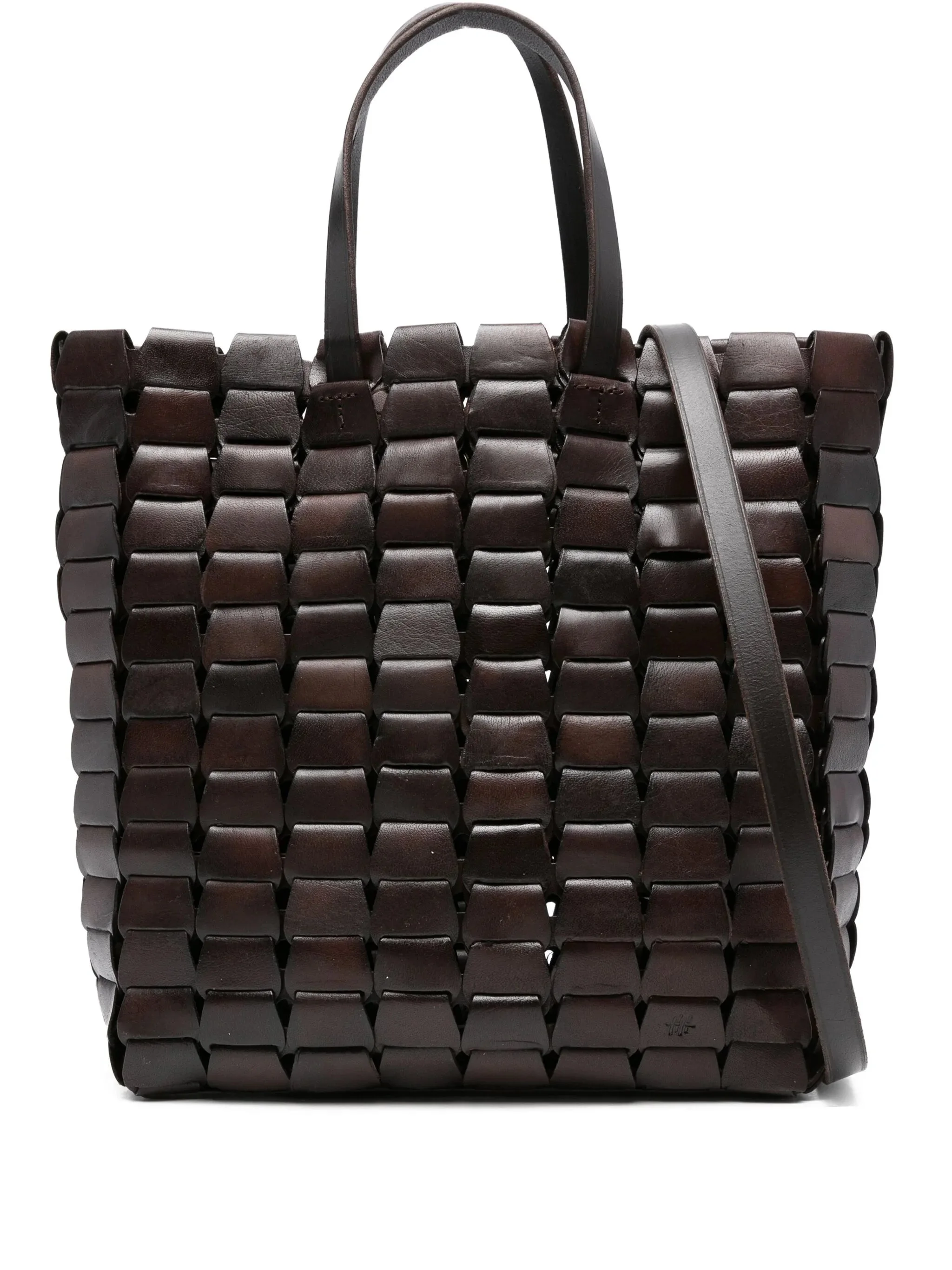 dark brown leather woven design two top handles detachable shoulder strap scalloped edges - Color: BLACK - Made in: India - Designer Style ID: 8960 DKBRO Composition and care Outer Composition Leather: 100.0%