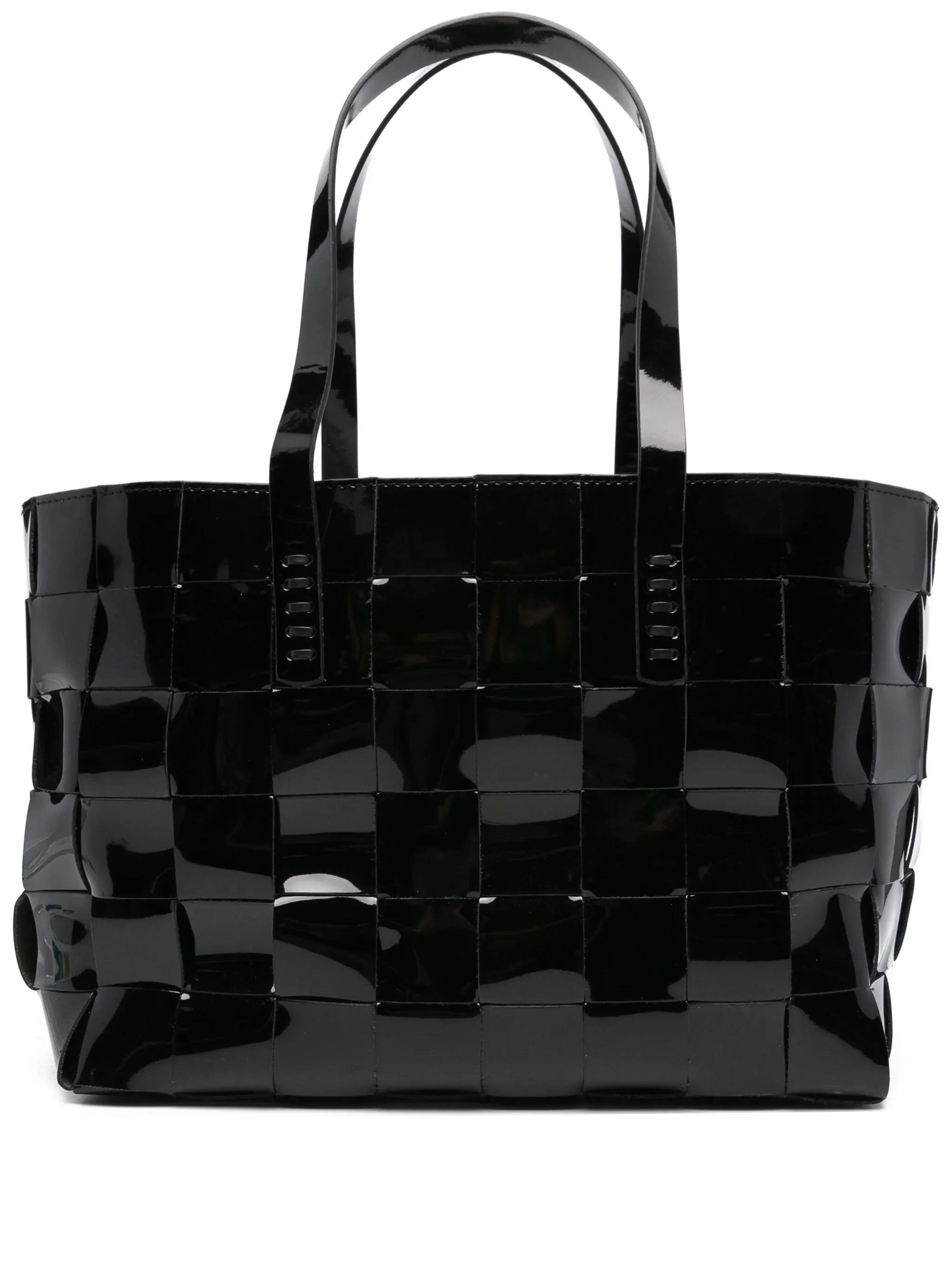 black patent leather woven design top handles internal pocket zip fastening - depth: 16.0 centimetres, height: 24.0 centimetres, strap: 60.0 centimetres, width: 33.0 centimetres - Color: BLACK - Made in: India - Designer Style ID: 8151P PABK Composition and care Outer Composition Patent Calf Leather: 100.0%