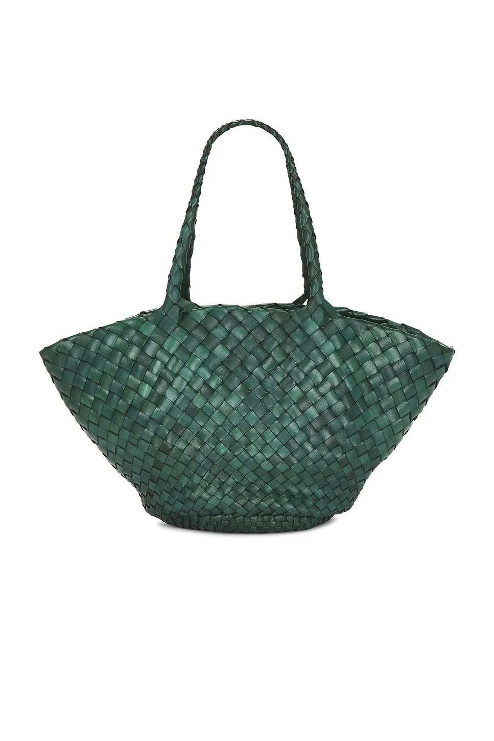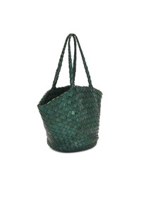 - Woven leather tote - Made in India - Open top - One main compartment - Dual braided shoulder straps - Measures approx 7.25" - 16" W x 10" H x 7.25" D Shoulder strap with a 8" drop - Revolve Style No. DRAR-WY1 - Manufacturer Style No. 8026
