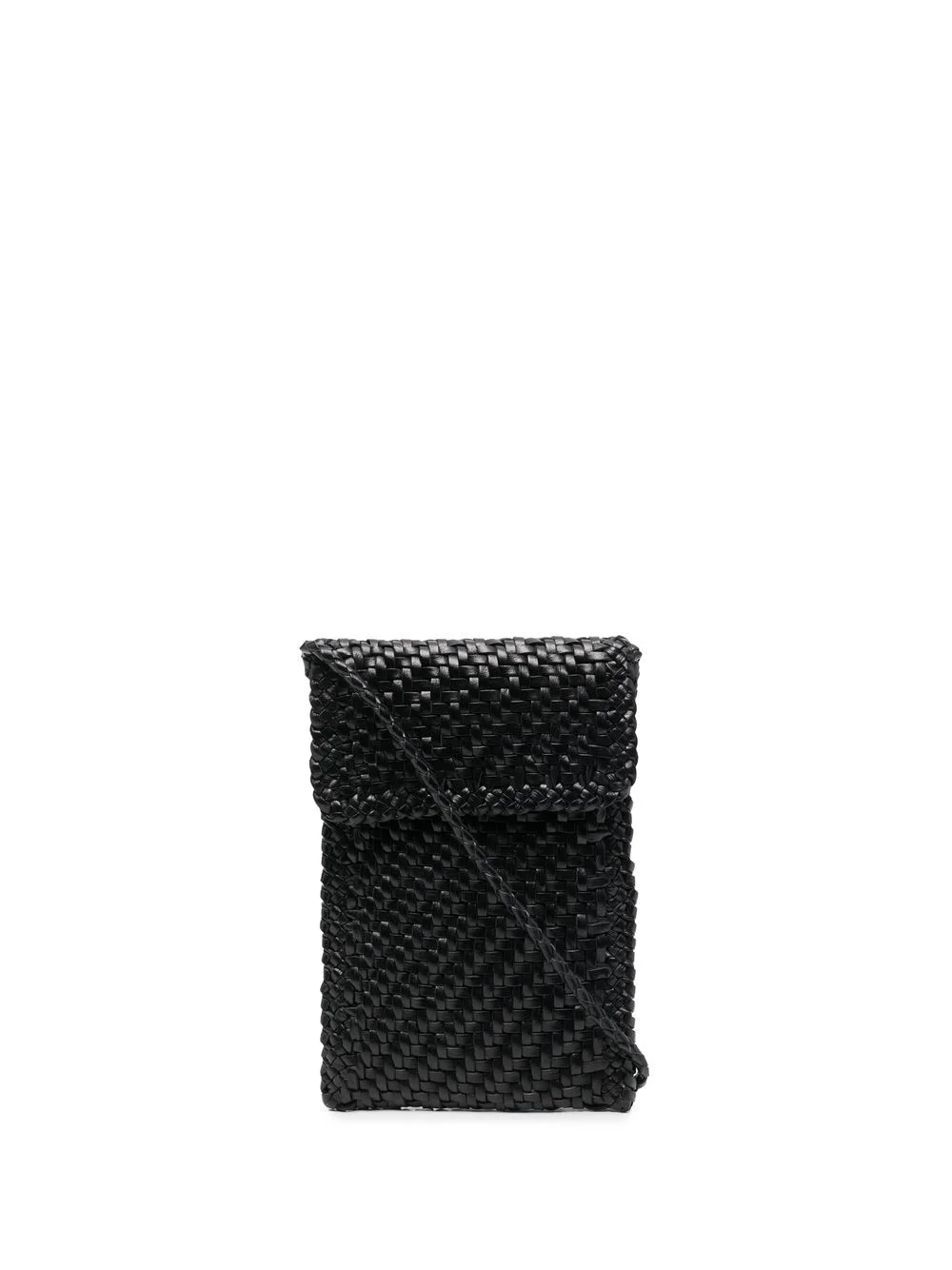 leather phone bag Highlights - Interwoven-design phone-case bag from dragon diffusion featuring black, leather, rectangle body, interwoven design, foldover top and single shoulder strap. Imported Composition Outer: Leather 100% SIZE & FIT Model measurements Height 5 ft 11 in(1.8 m) Bust/Chest 31.49 in(80 cm) Hips 35.43 in(90 cm) Waist 24.4 in(62 cm) Measurement HEIGHT 7.08 in(18 cm) STRAP 24.8 in(63 cm) WIDTH 4.72 in(12 cm) DEPTH 0.39 in(1 cm)