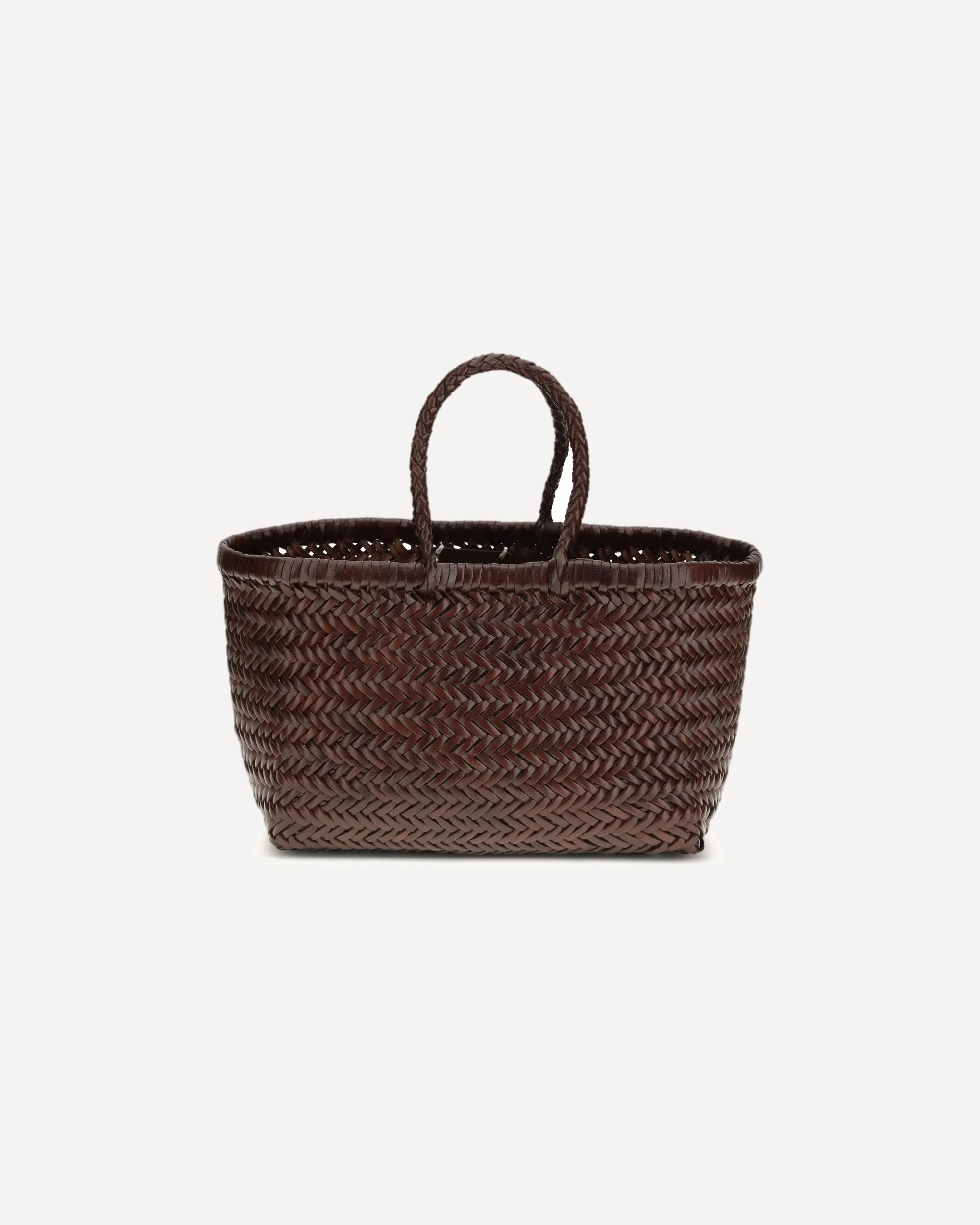 The Mini Flat Gora Handbag is a refined accessory, handwoven from high-quality buffalo calfskin. Unlined, it features a minimalist and elegant design with a double handle for easy carrying. Inside, each bag is decorated with an antiqued St. Christopher medal pendant, a tribute to the patron saint of travelers. A sophisticated pattern that combines craftsmanship and symbolism, perfect for adding a touch of class and protection to your looks. DETAILS - Sku: DGS68811_BRUCI - Season: SS26 - Dimension: 30x17 - Composition: GENERAL 100% Buffalo - MADE IN INDIA