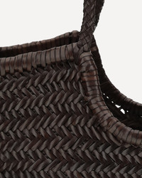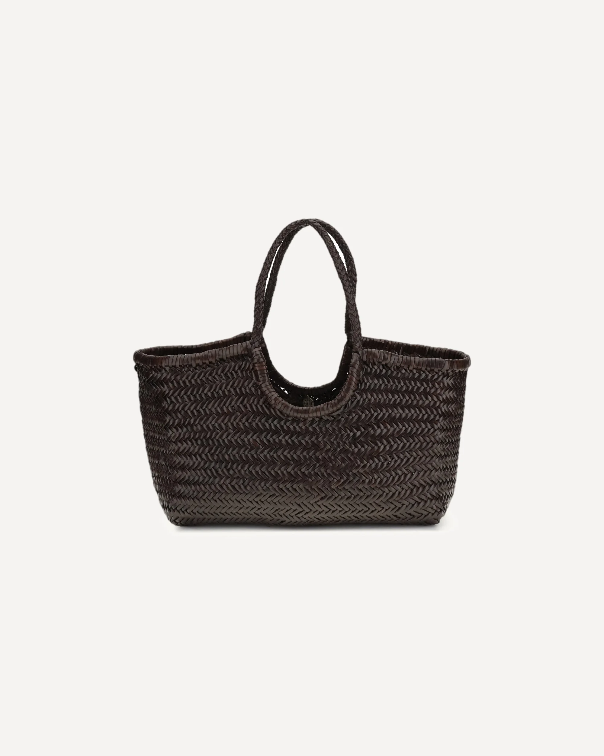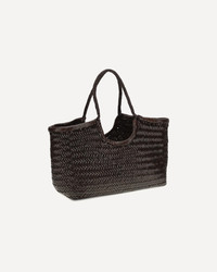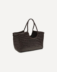 The Nantucket Big Shoulder Bag by Dragon Diffusion is a hand-woven basket made of high-quality buffalo calfskin. Unlined, this bag features a natural and elegant design with double handles for convenient carry. Inside, an antiqued St. Christopher medal charm is hand-stitched as a symbol of protection for travelers. A functional and sophisticated design that combines craftsmanship, tradition and timeless style. DETAILS - Sku: DGS68822_DKBRO - Season: SS26 - Dimension: 46x35 - Composition: GENERAL 100% Buffalo - MADE IN INDIA