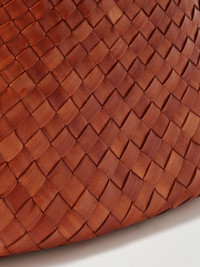 EDITORS'NOTES Dragon Diffusion's bags are inspired by traditional woven baskets used for hundreds of years around the world. This 'Santa Croce Big' tote is handmade from vegetable-dyed strips of leather that get thinner towards the top to achieve the elegantly curved trapeze shape. Inside you'll find a hand-sewn St. Christopher medal charm, believed to manifest protection on your travels and the brand's marker of quality and authenticity. SIZE & FIT This item’s measurements are: - Handle Drop: 21cm / 8.3in - Depth: 11.5cm / 4.5in - Height: 21.5cm / 8.5in - Width: 44cm / 17.3in DETAILS & CARE - Tan leather (Buffalo) - Two top handles - Unlined - Open top